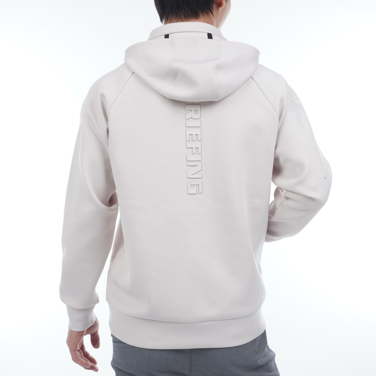 凹凸で表現された背面のBRIEFINGロゴ、胸元や袖など各所に目を惹くアクセントを配置することで、さらっと着用しただけで様になる存在感がありながらも、各所のアクセントの配色やコントラストを極限まで減らすことで、よりミニマルで都会的なルックスに仕立てました。