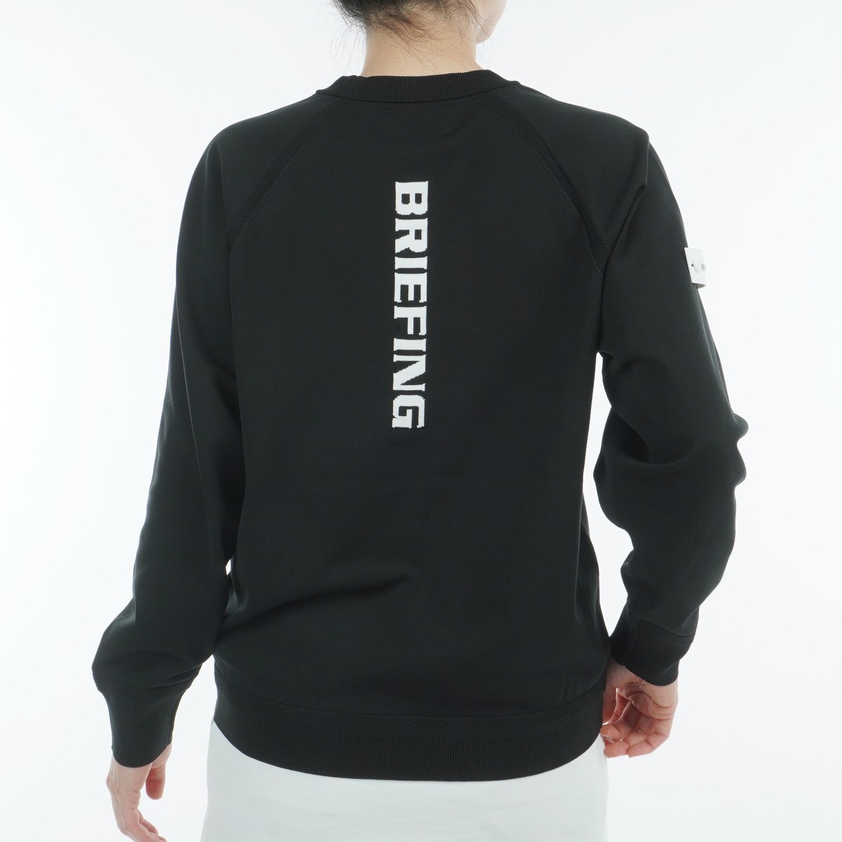 胸元、背面にあしらわれたBRIEFINGロゴが目を惹くクルーネックセーター。