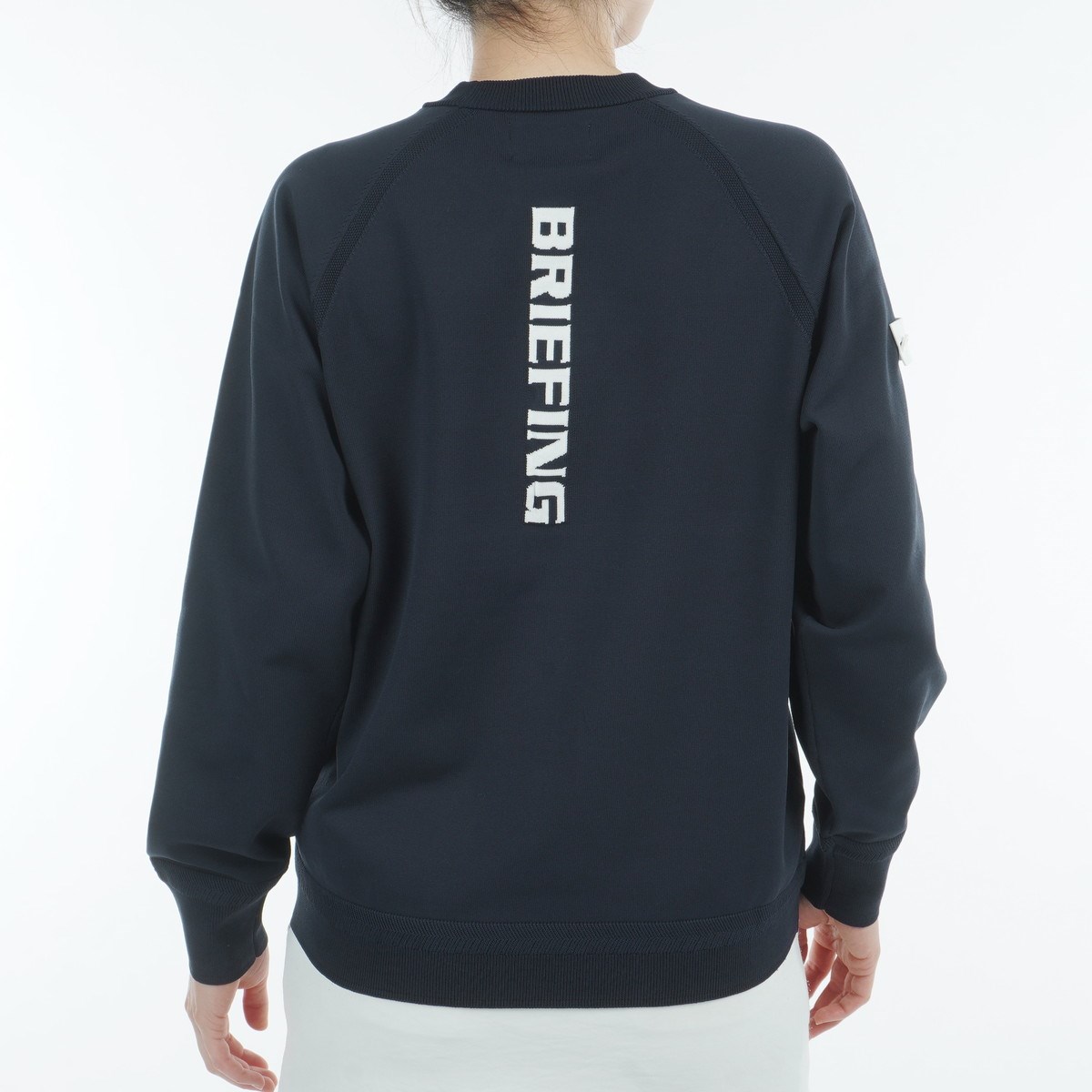 胸元、背面にあしらわれたBRIEFINGロゴが目を惹くクルーネックセーター。