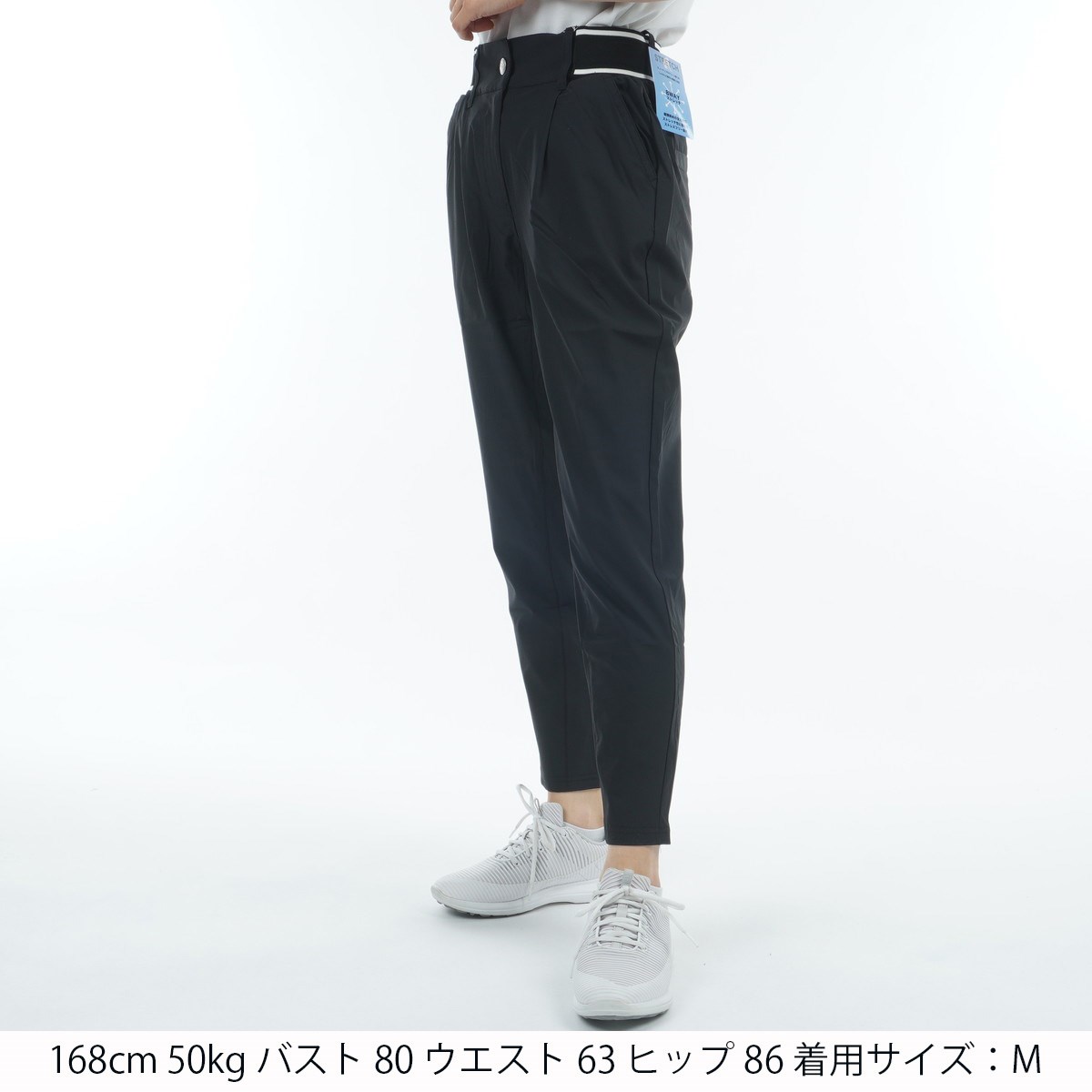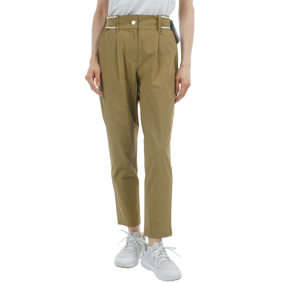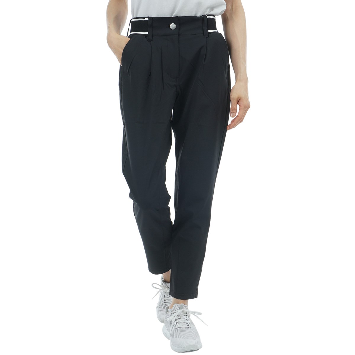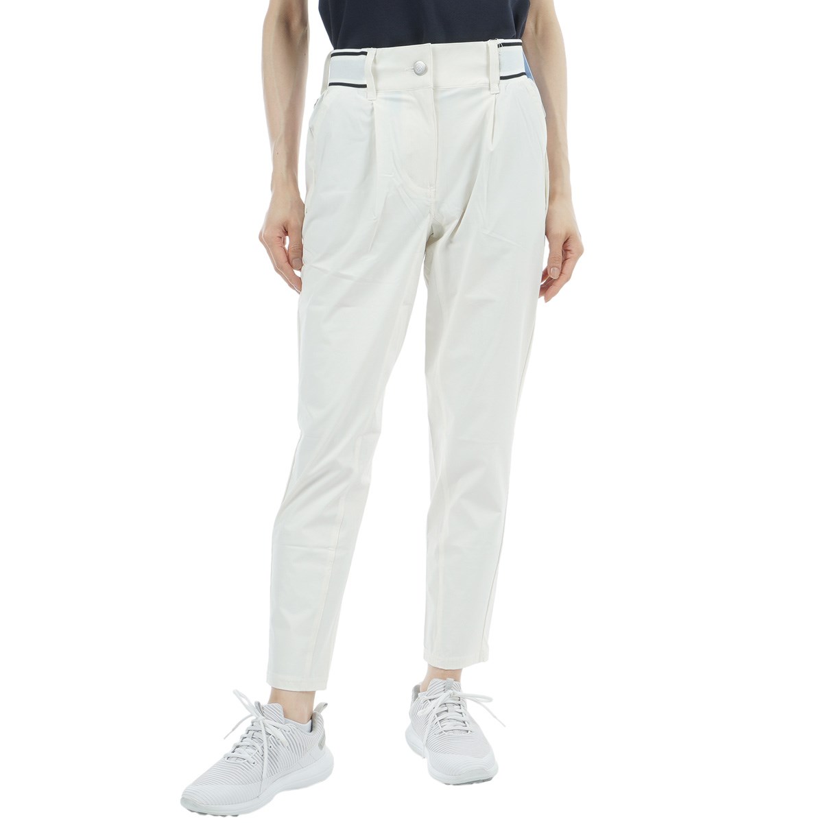 ロゴ入りのウエストリブお腹周りの窮屈感を軽減させ、フロントのタックがシャープな印象をもたらします。