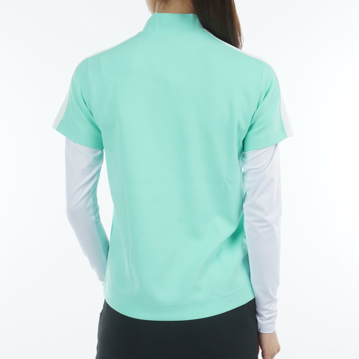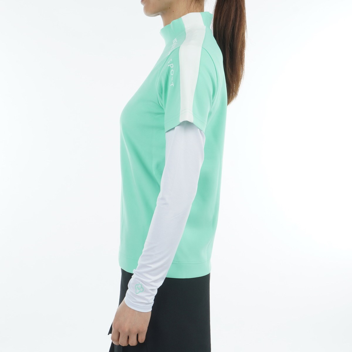 冷感ダンボールニットのモックネック半袖シャツと長袖インナーシャツのセットアイテム。