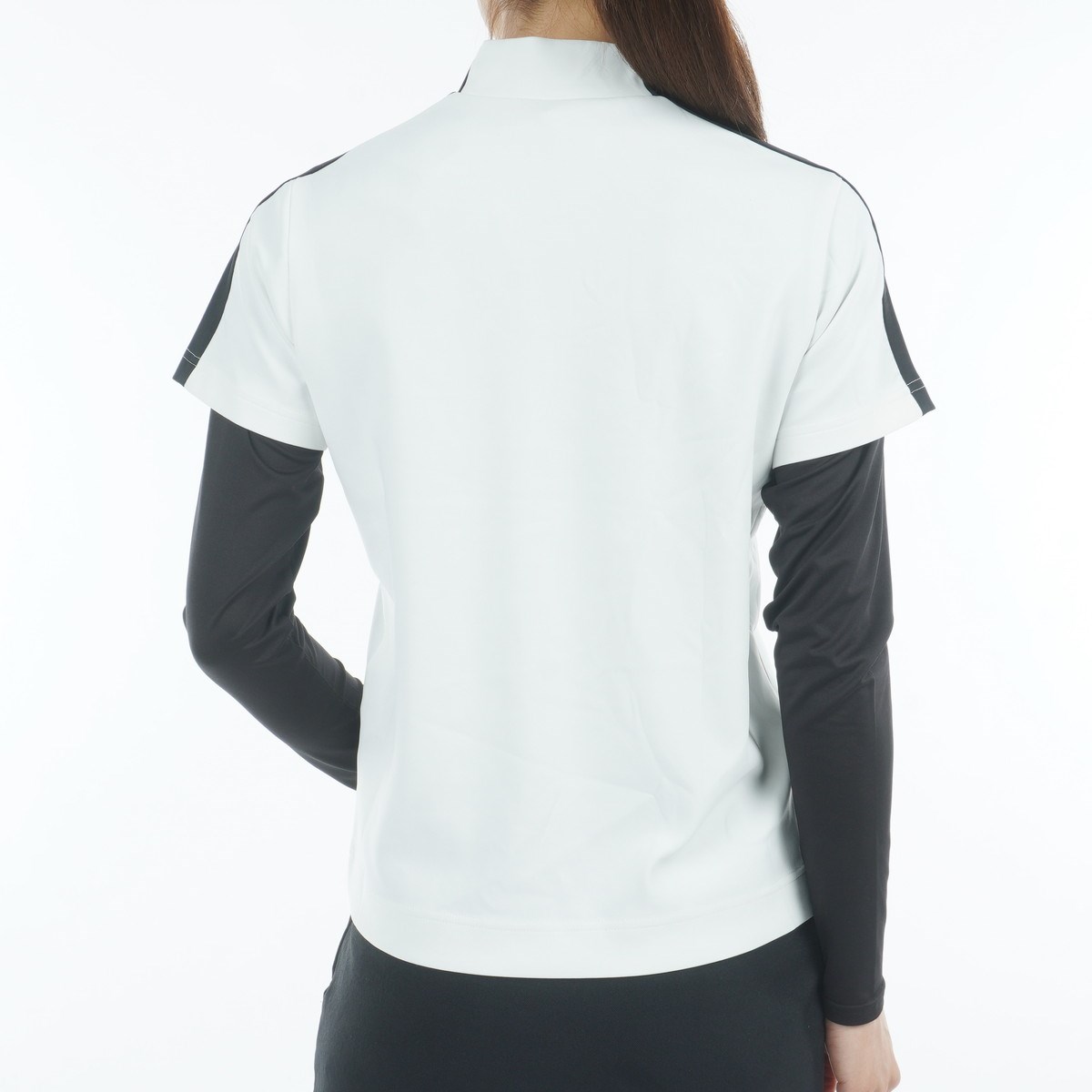 マリクレール marie claire ストレッチ 長袖インナーシャツ付きモックネック半袖シャツ M ホワイト レディス