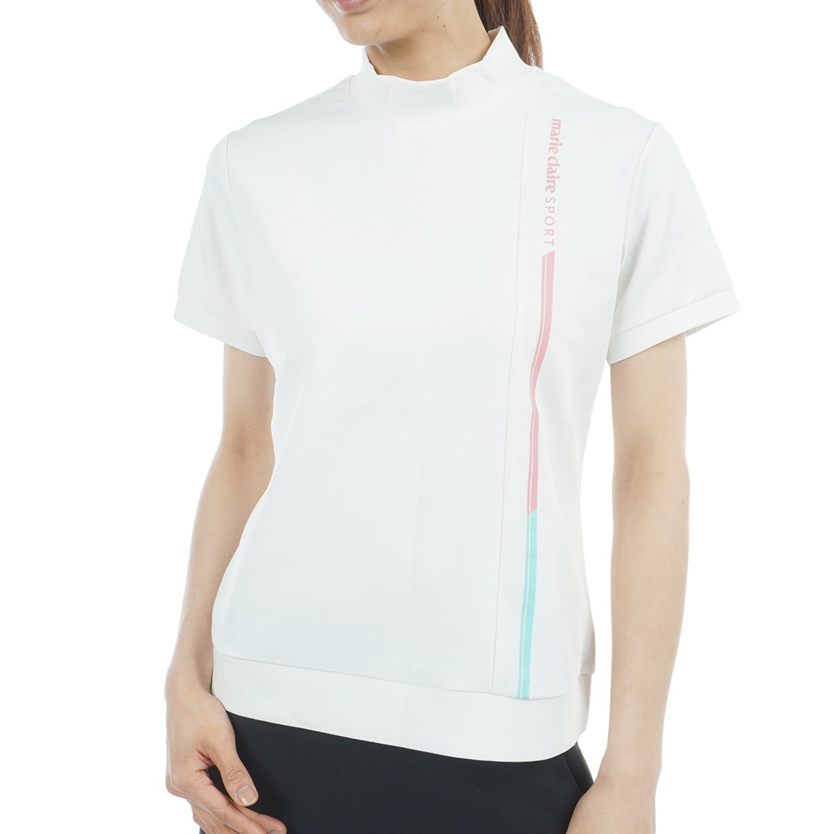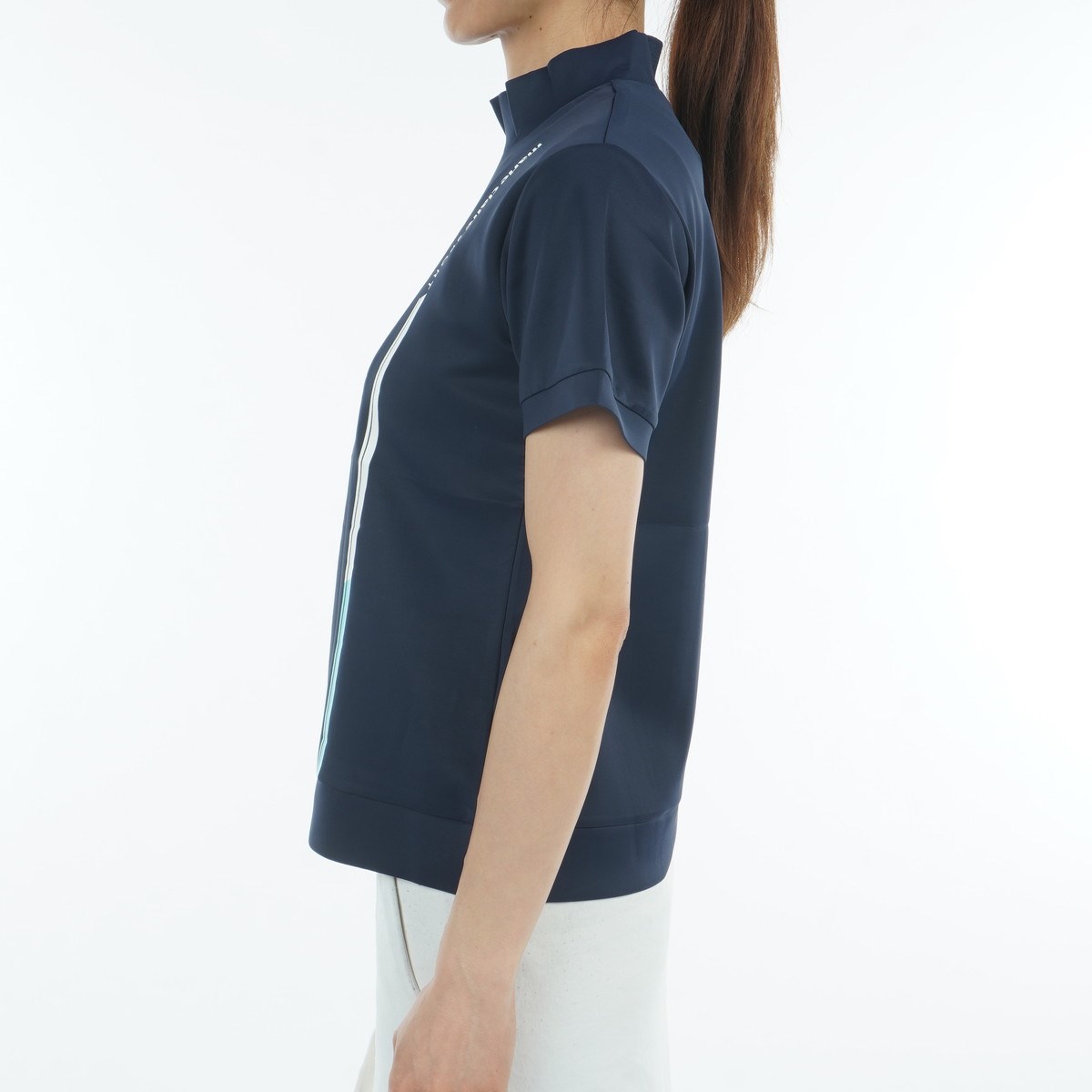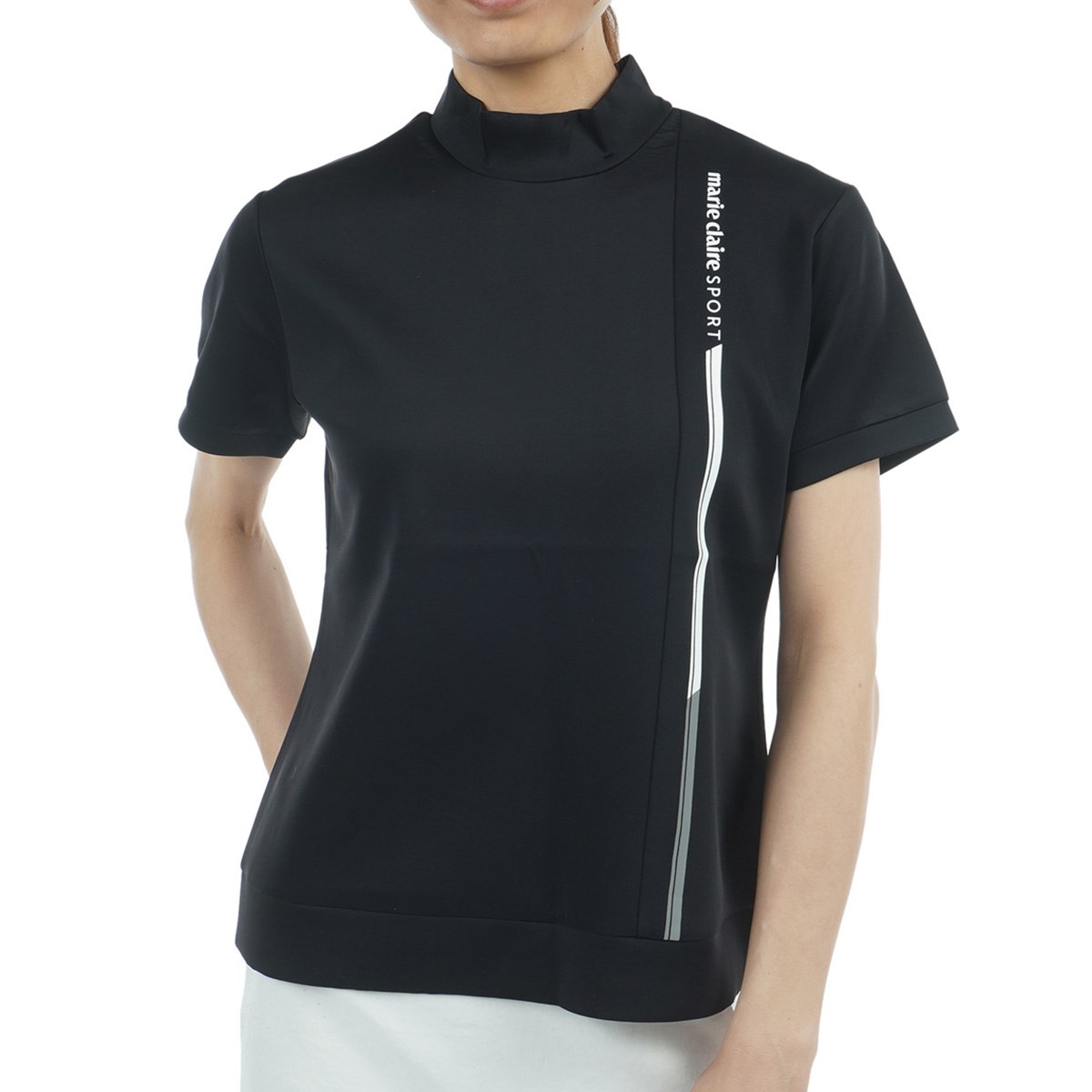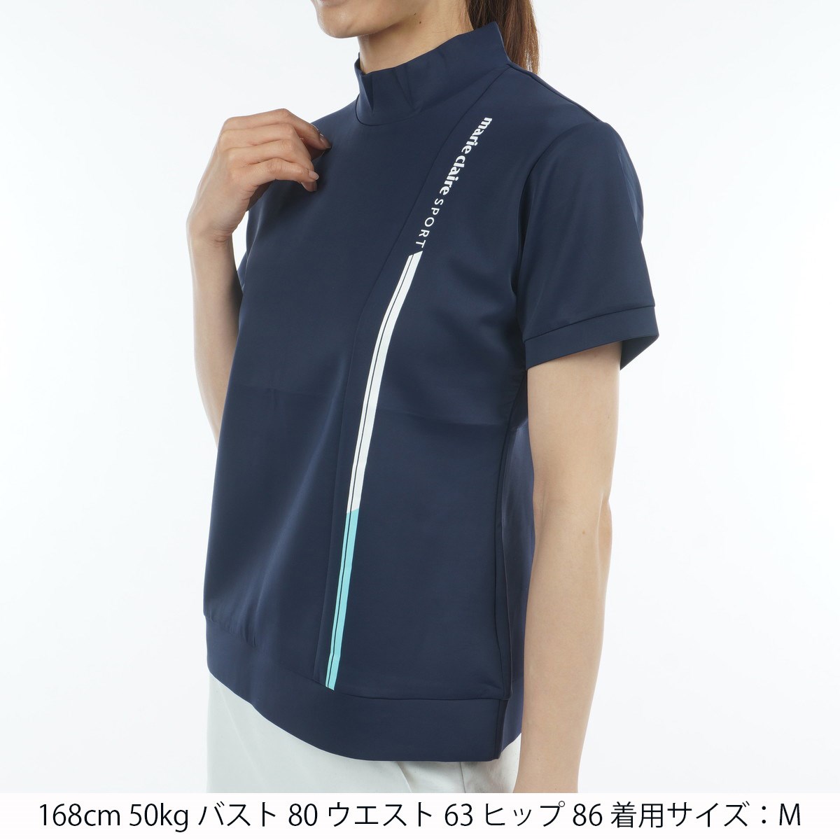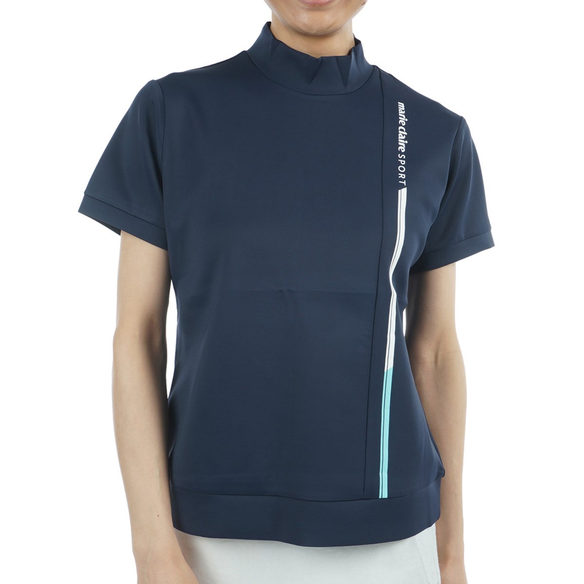マリクレール marie claire ストレッチ モックネック半袖シャツ LL ネイビー レディス