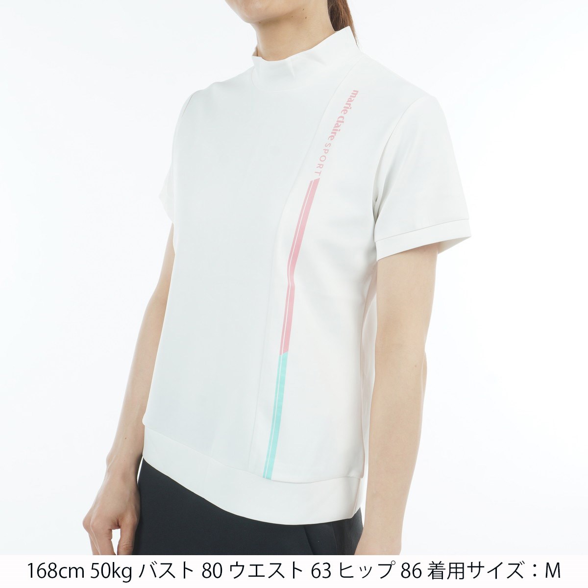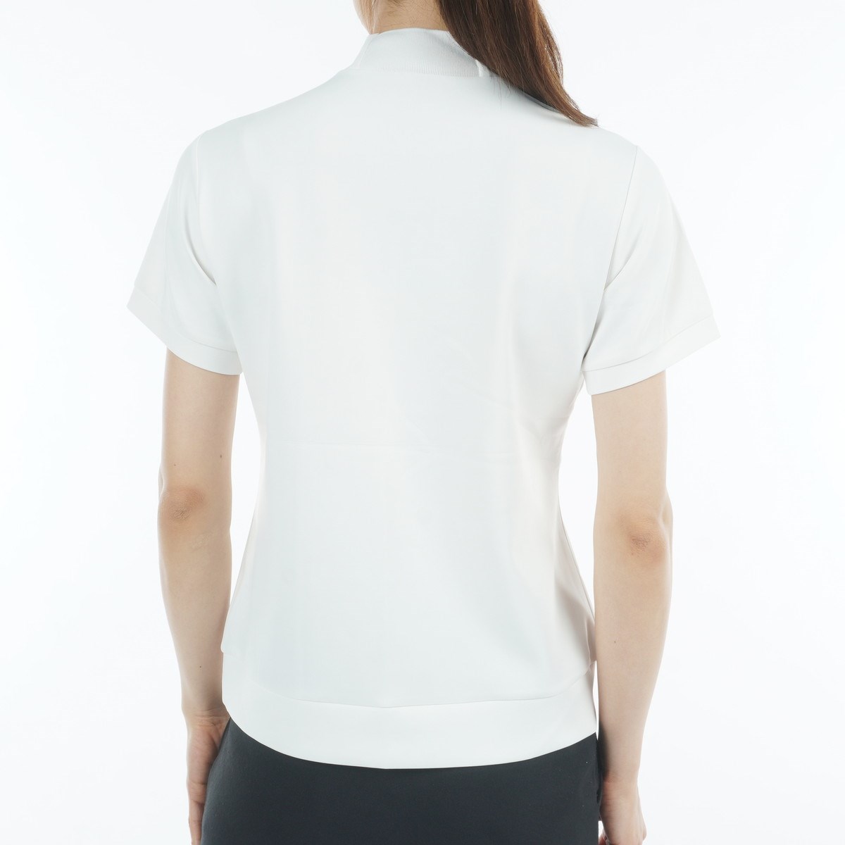 マリクレール marie claire ストレッチ モックネック半袖シャツ L ホワイト レディス