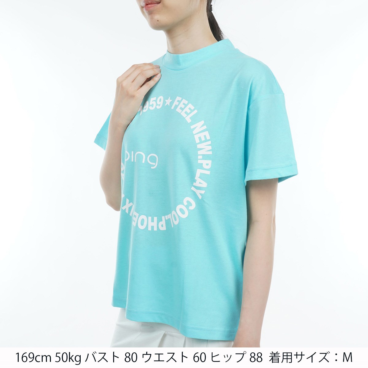 ピン PING ビッグシルエットグラフィックハイネック半袖シャツ S ブルー 110 レディス