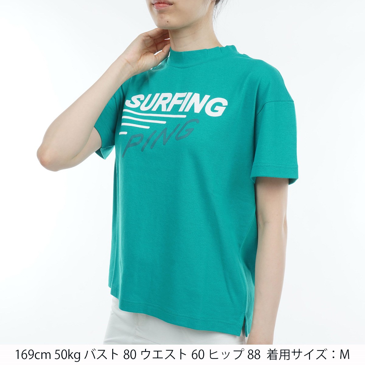 ピン PING ビッグシルエットグラフィックハイネック半袖シャツ S ターコイズ 111 レディス