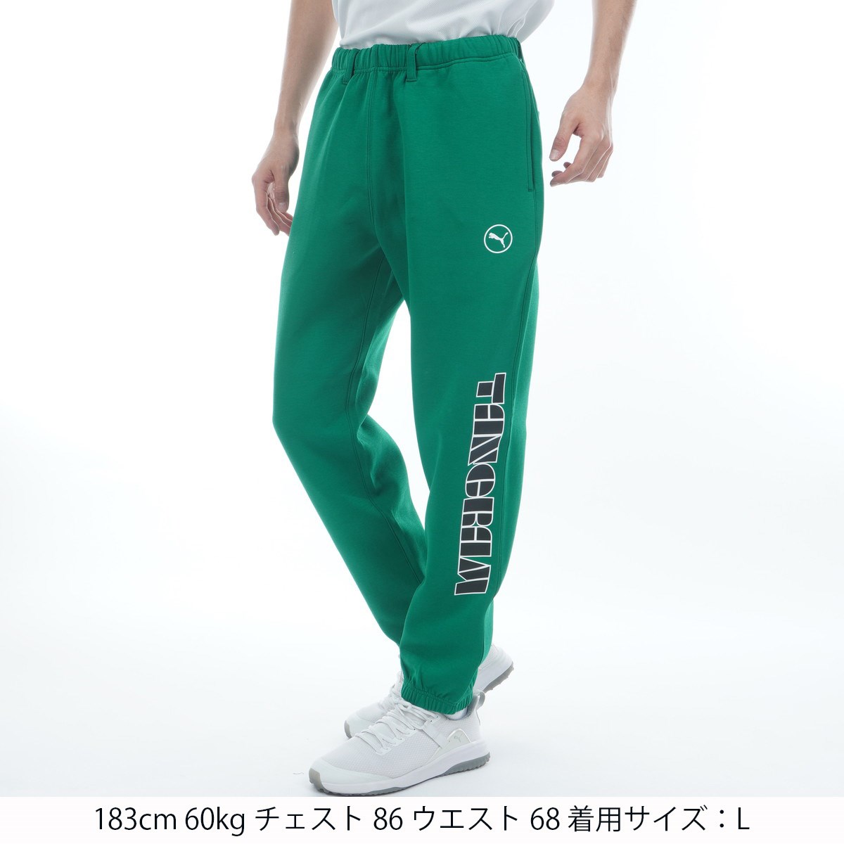 PUMAとTANGRAMのオリジナルロゴをランダムに大胆に配したスウェットパンツ。