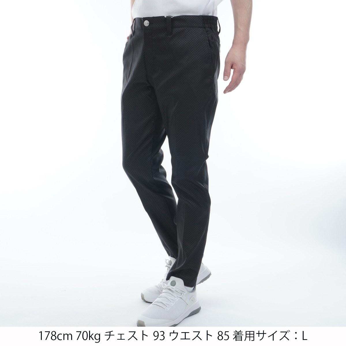 M:ウエスト(A)82、ウエスト(B)90、ヒップ94、股上25、股下71.5、わたり幅31