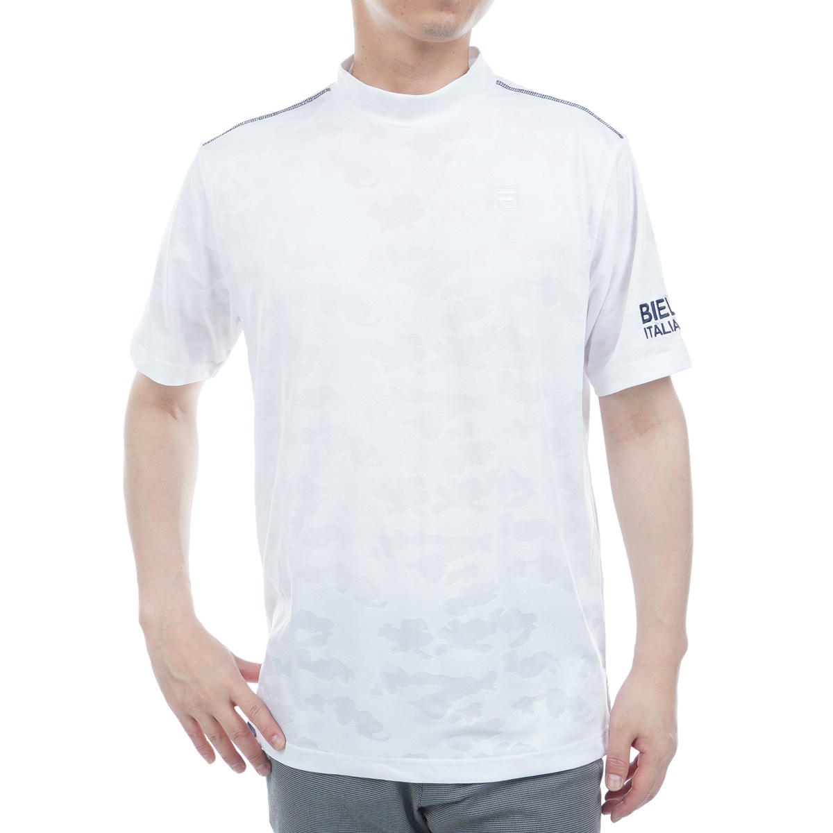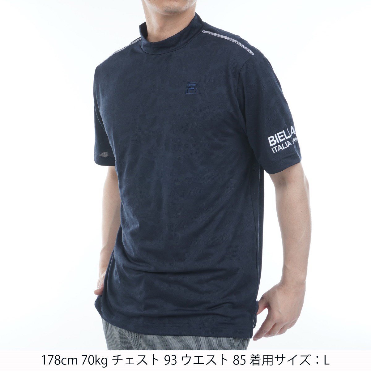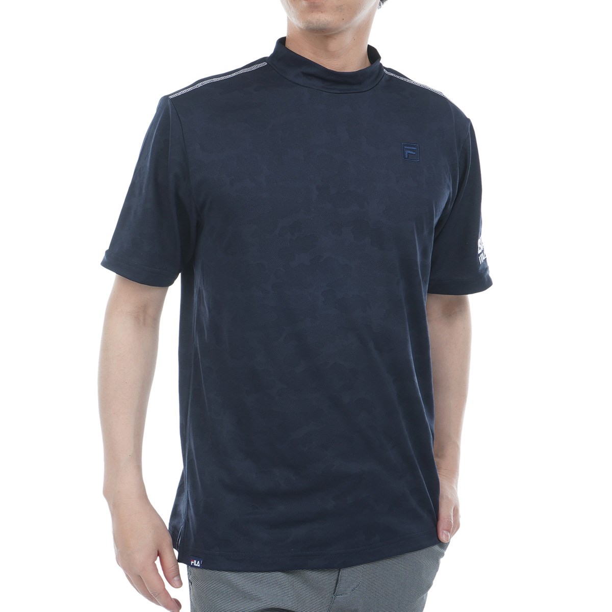 フィラ FILA カモ柄 モックネック半袖シャツ M ネイビー