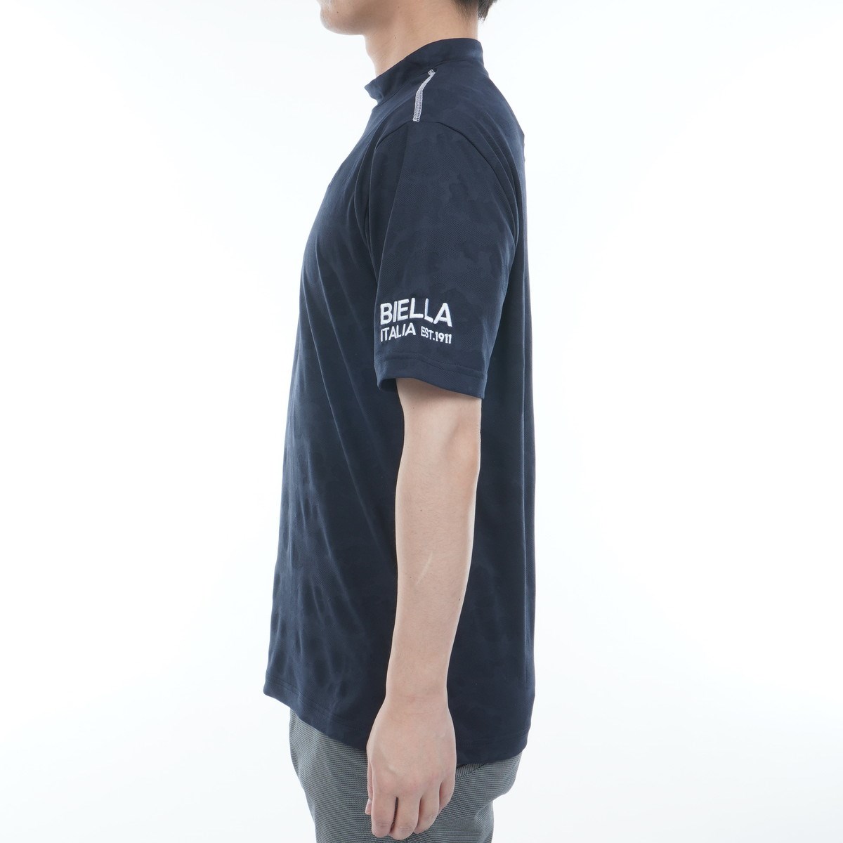 メッシュジャカードカモ柄 モックネック半袖シャツ。