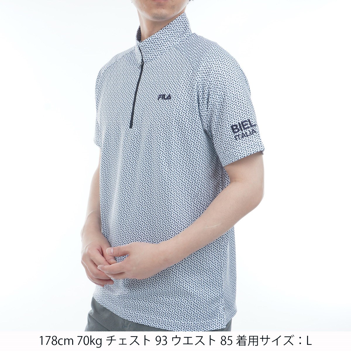 フィラ FILA 小柄プリント ハーフジップ半袖シャツ LL ホワイト