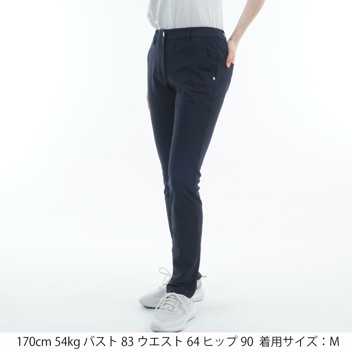 M:ウエスト(A)73.4、ウエスト(B)83、ヒップ89、股上22.5、股下80、わたり幅31