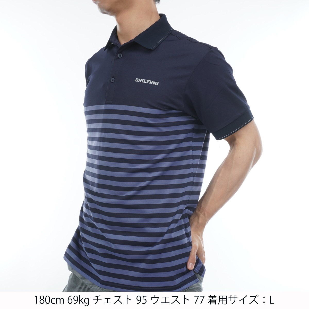 ブリーフィング BRIEFING シャドウ ストライプ 半袖ポロシャツ XL ネイビー 076