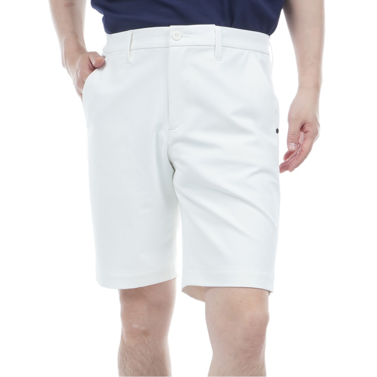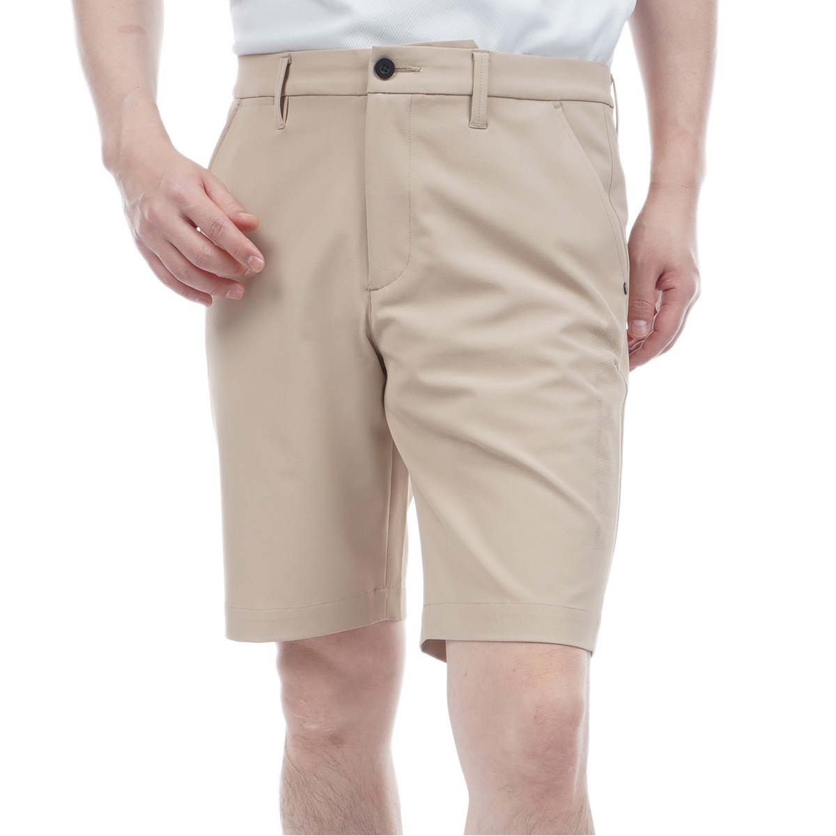 サイドのパンチングロゴが洒脱な、スリムシルエットのメンズゴルフハーフパンツです。