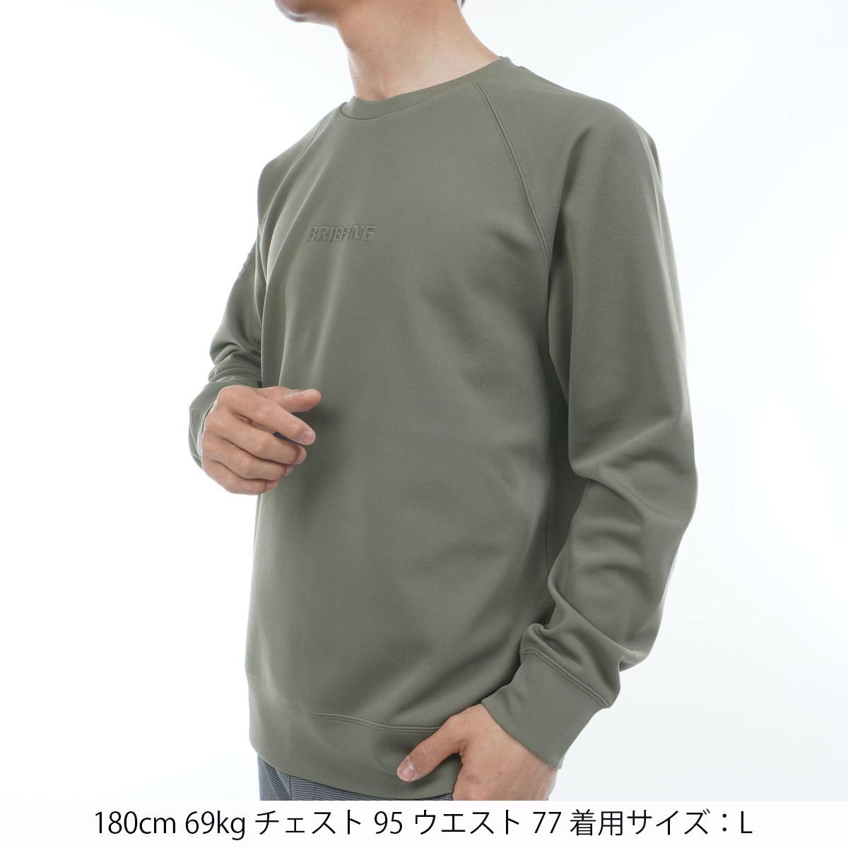 ブリーフィング BRIEFING ストレッチ ミニ 3D ロゴ クルーネックスウェット XL オリーブ 067