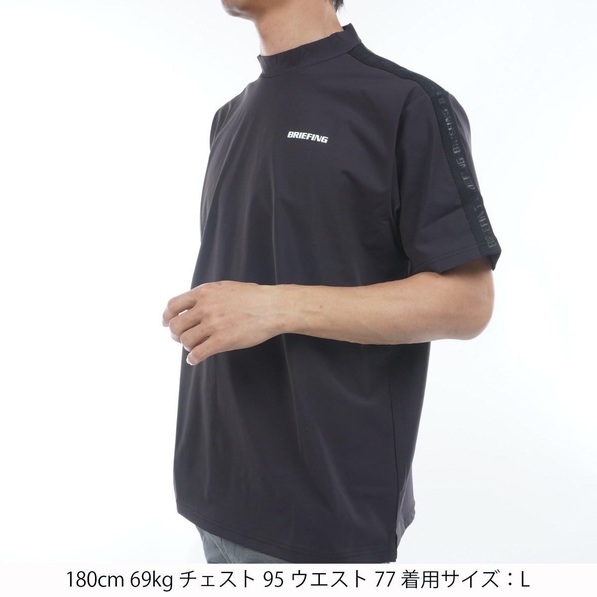 ブリーフィング BRIEFING ロゴ ライン RF ハイネック半袖シャツ M ブラック 010