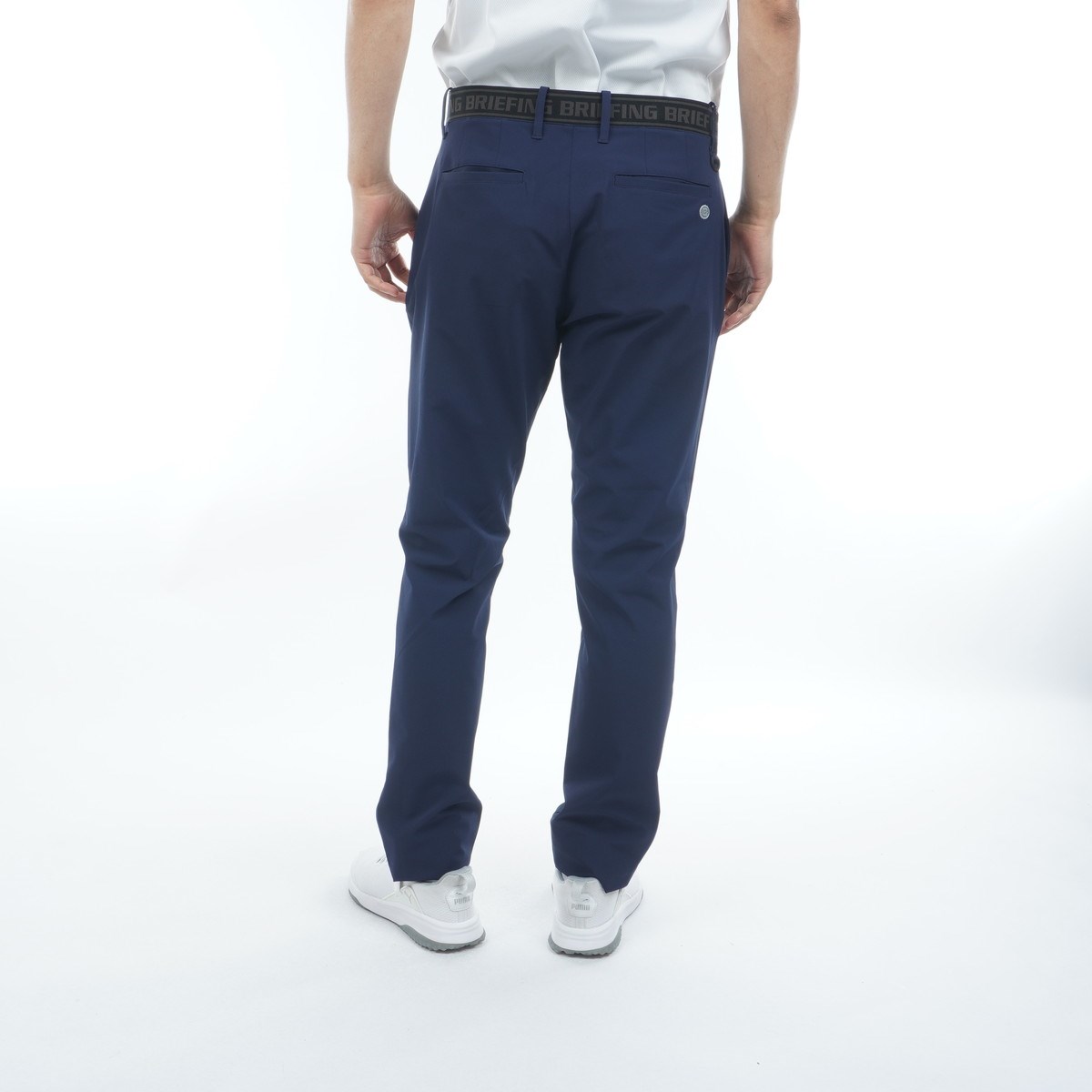 細身のシルエットでスマートなゴルフルックを叶えるメンズのロングパンツです。