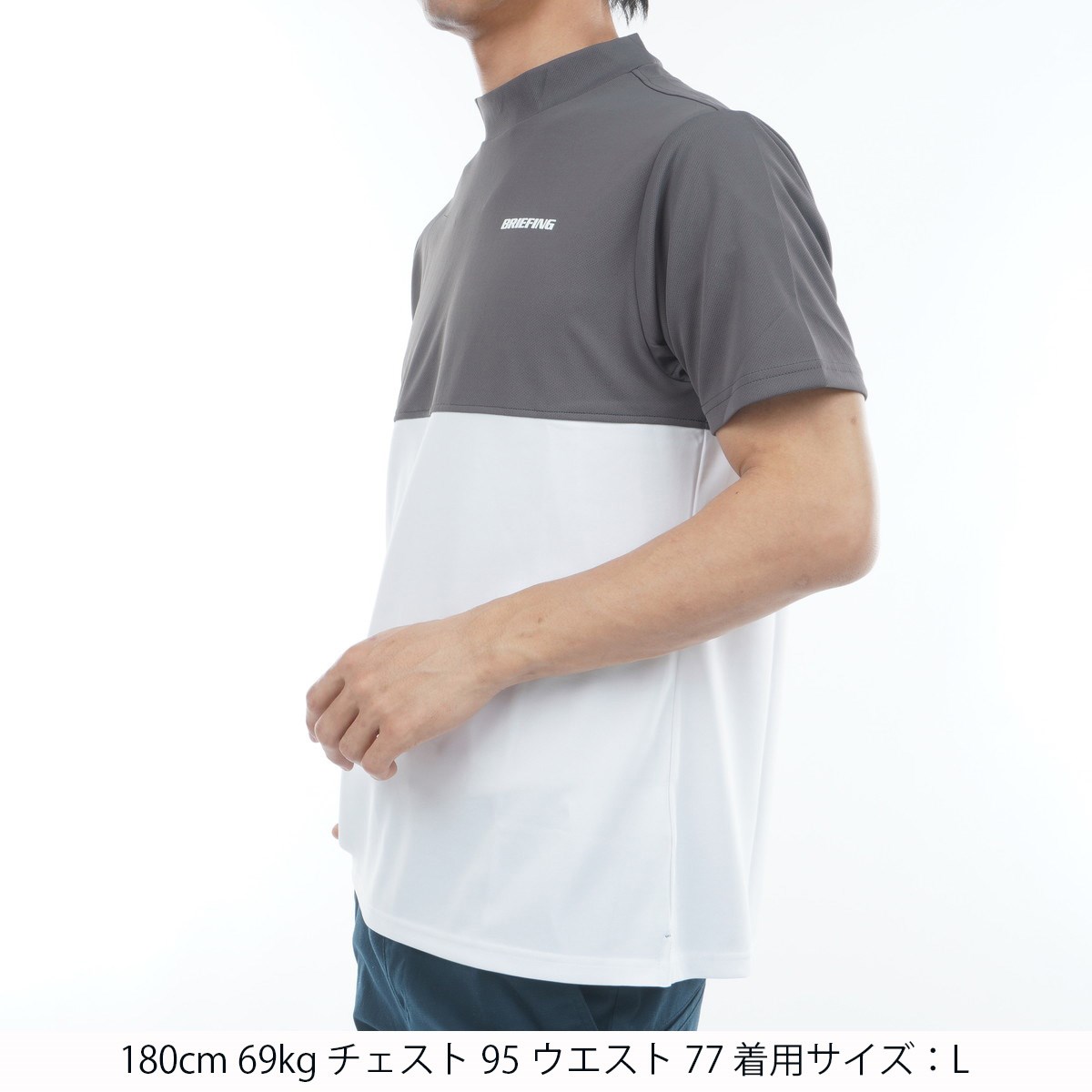 ブリーフィング BRIEFING バイカラー ハイネック半袖シャツ L チャコール 017
