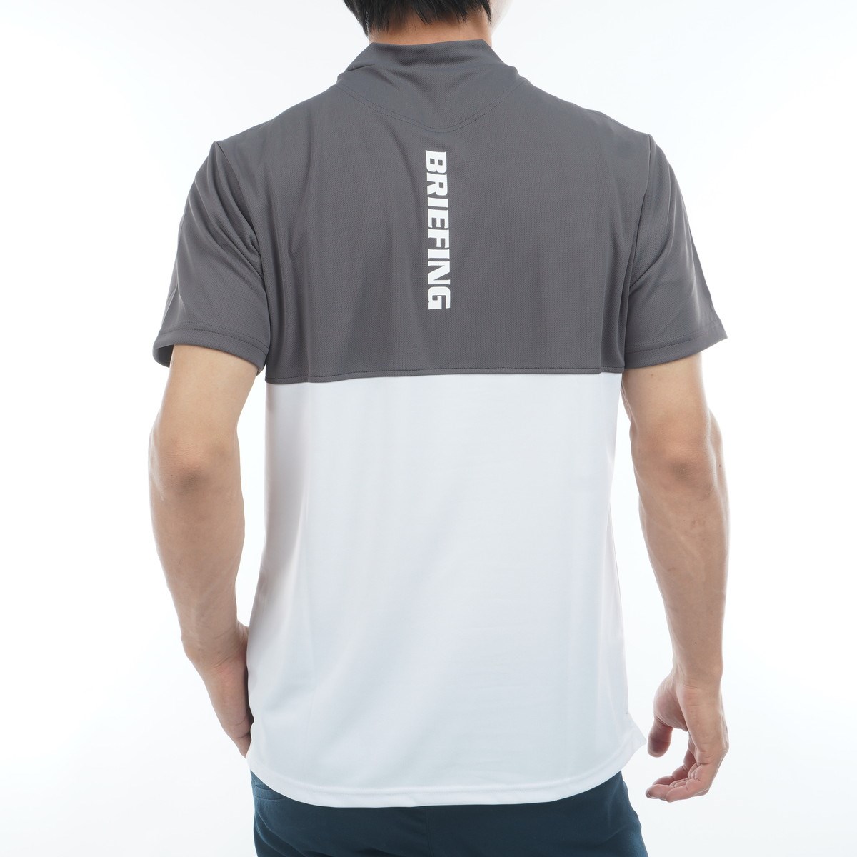 ・存在感あるバイカラーデザインに、背面側にはBRIEFINGのロゴプリントを配置した、1枚着でも様になる存在感あるデザイン。