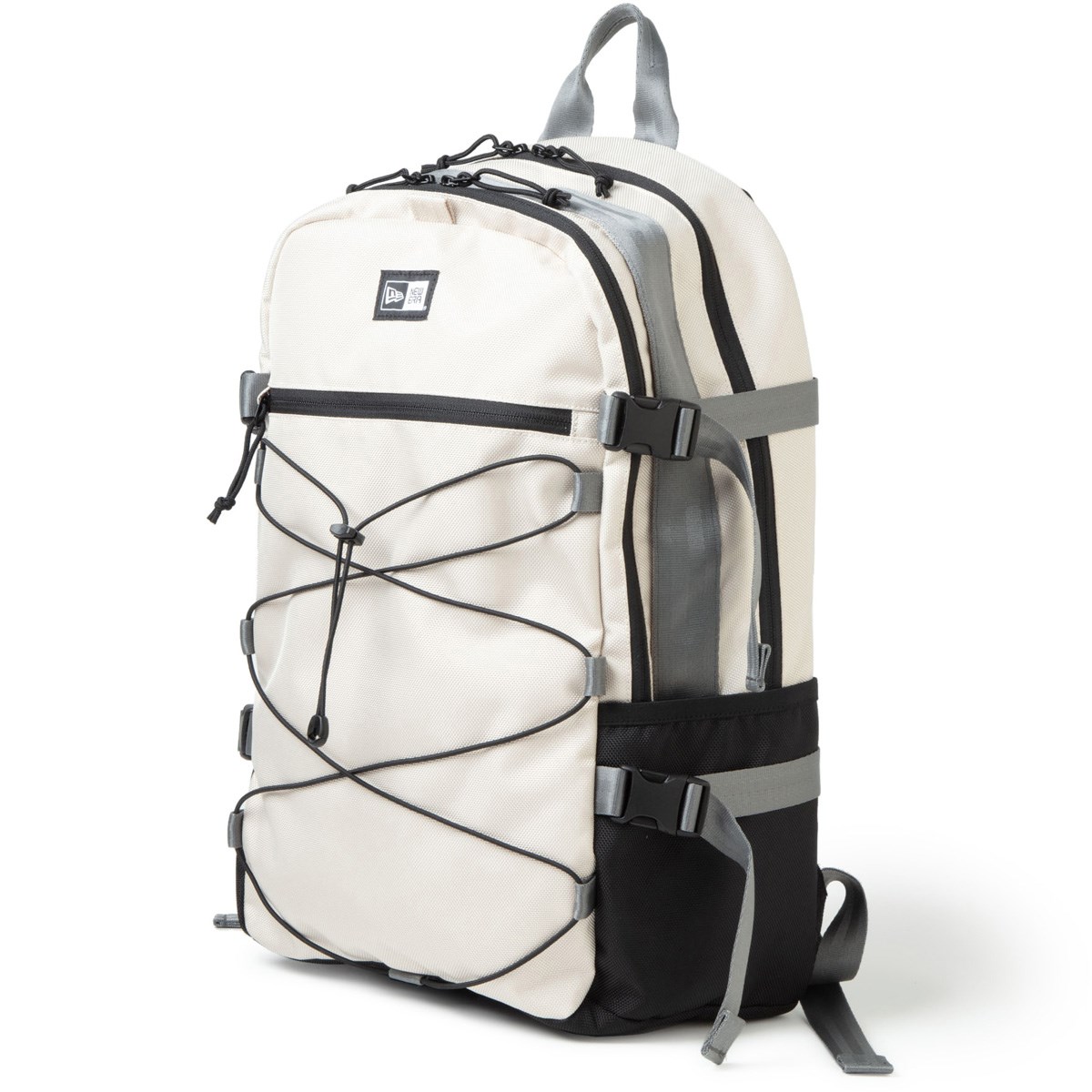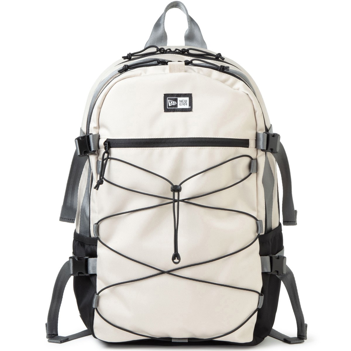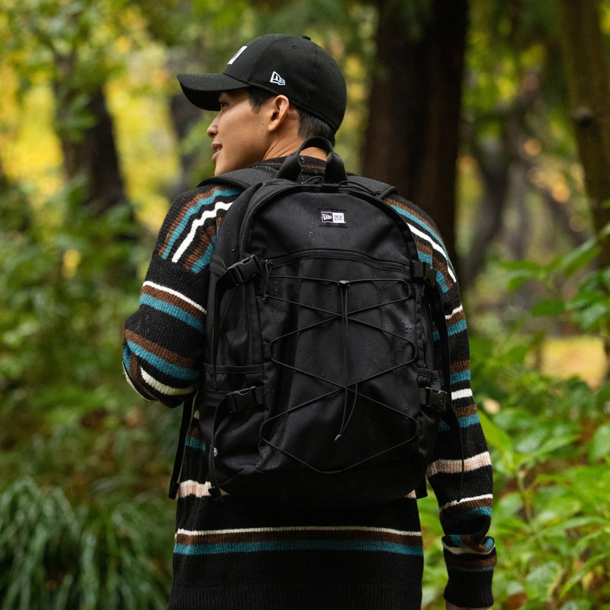 荷物をホールドすることができる外側のバンジーコードが特徴のバックパック。