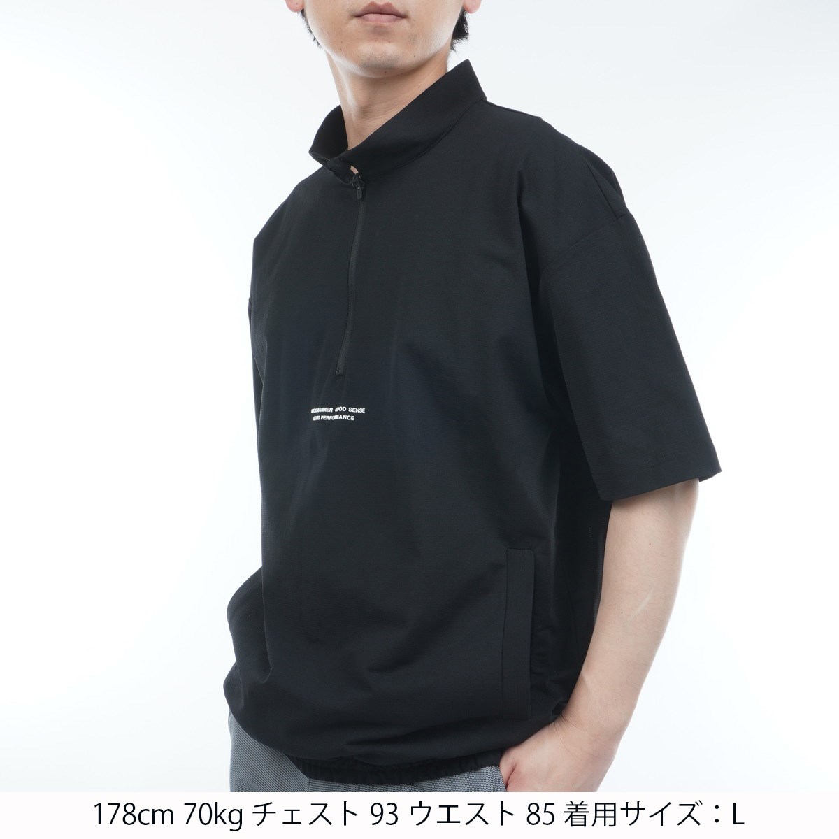 ユナイテッドアローズ UNITED ARROWS GOLF ハーフジップ半袖プルオーバー M ブラック