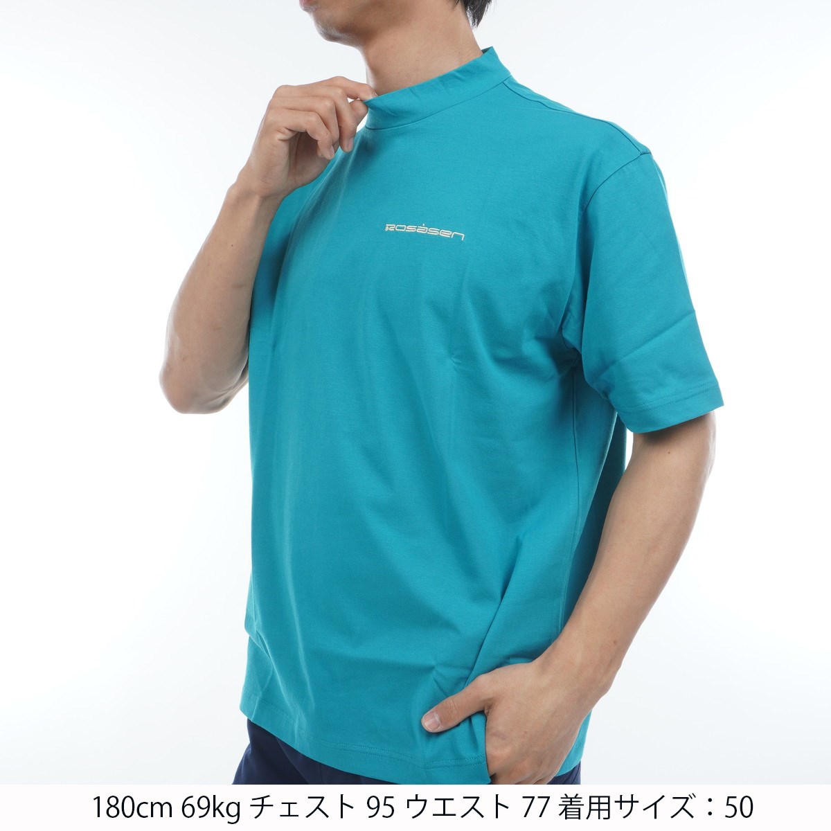 ロサーセン ROSASEN クール天竺 モックネック半袖シャツ 50 ブルー 95
