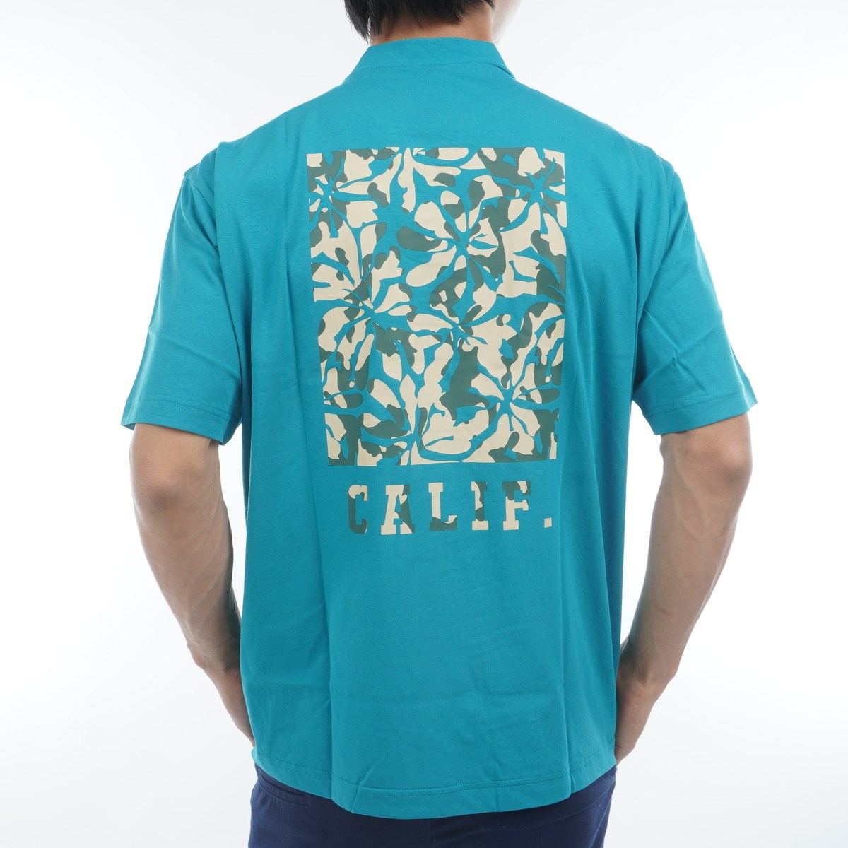フラワー柄のバックプリントが特徴のモックネック半袖シャツは、接触冷感に優れたICEDFABRIC+という素材を使用したアイテムです。