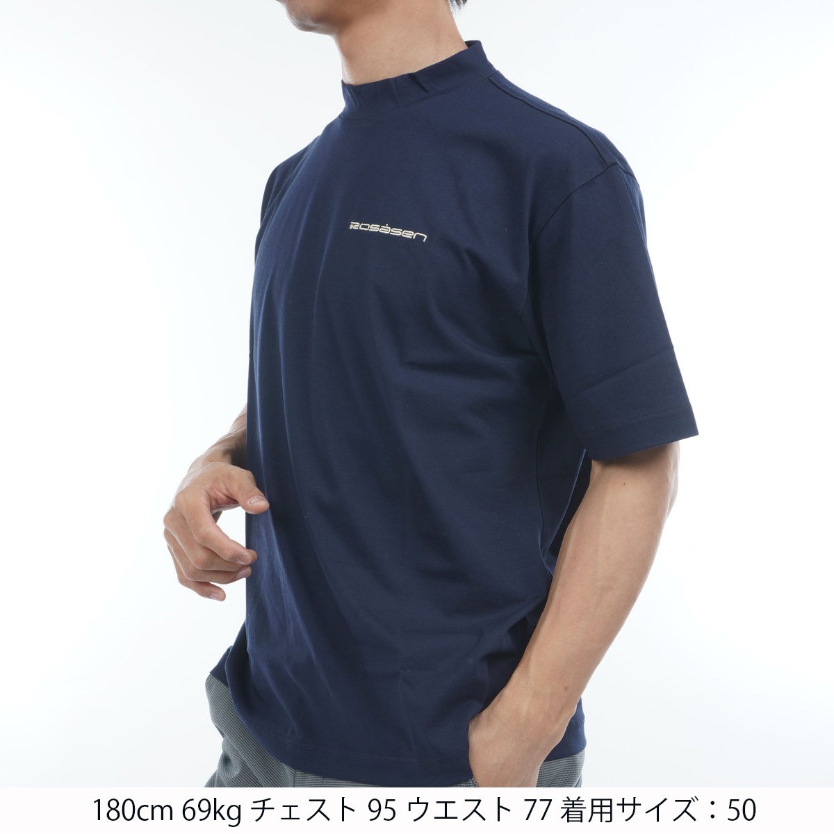 ロサーセン ROSASEN クール天竺 モックネック半袖シャツ 48 ネイビー 98