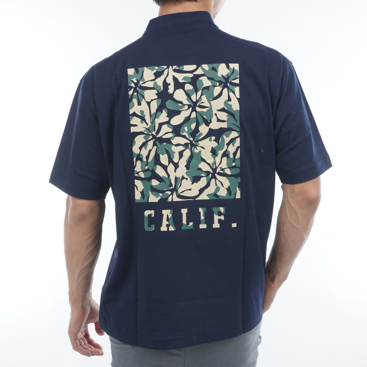 フラワー柄のバックプリントが特徴のモックネック半袖シャツは、接触冷感に優れたICEDFABRIC+という素材を使用したアイテムです。