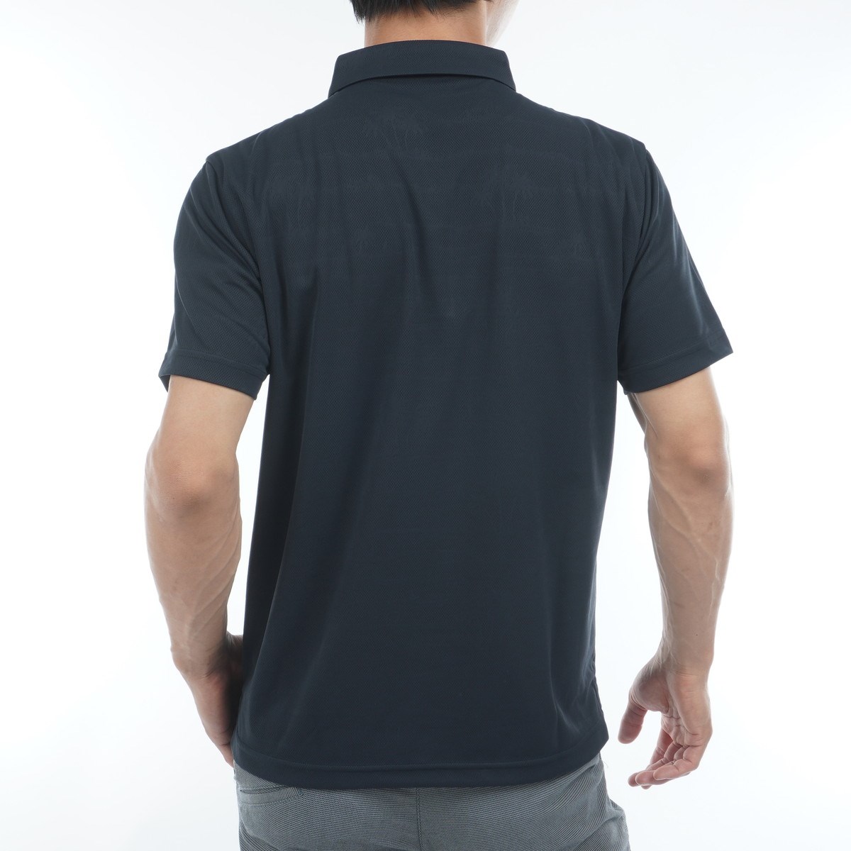 メッシュジャカード素材を使用した半袖ポロシャツは、さりげないアロハ柄が特徴です。