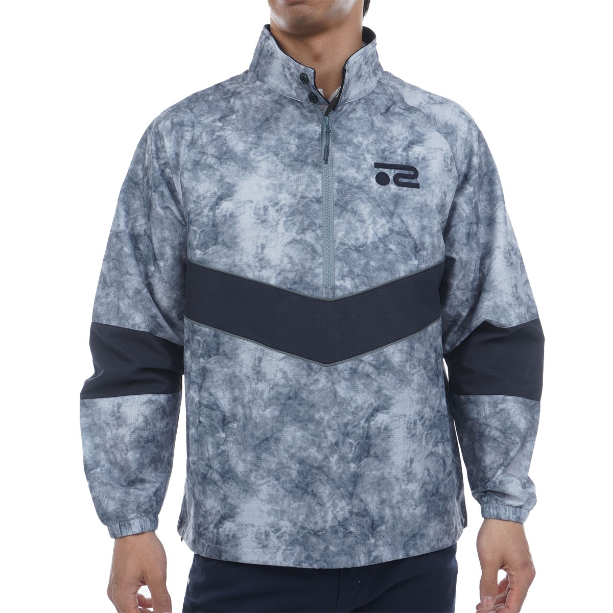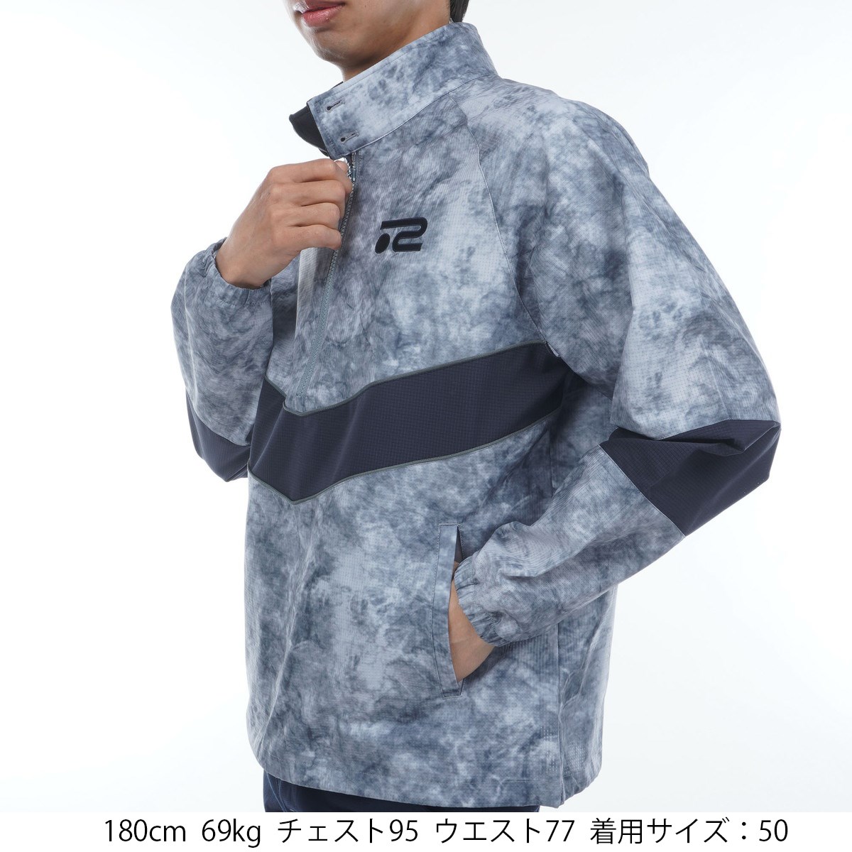 スモーキーな総柄と大胆な切替が特徴で、一枚で決まるアイテムです。