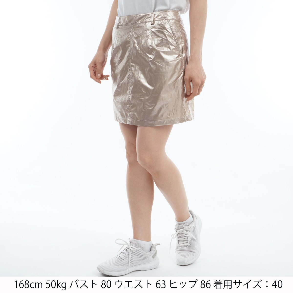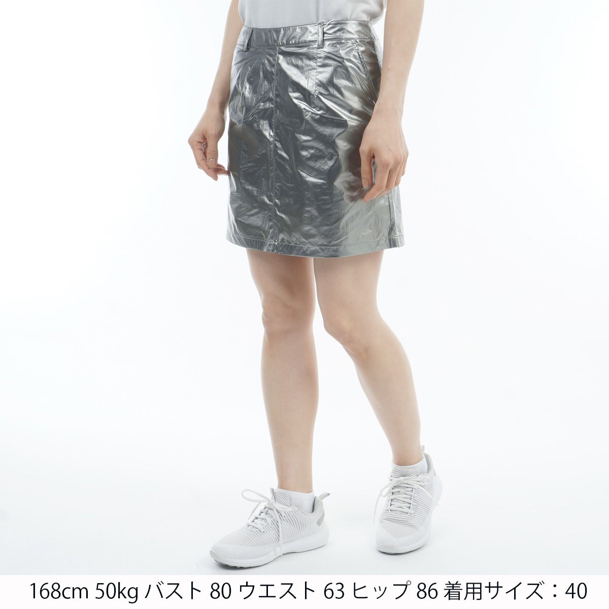 ガンメタリック風のシルバーとシャンパンゴールド風のゴールドの2色展開のスカートです。