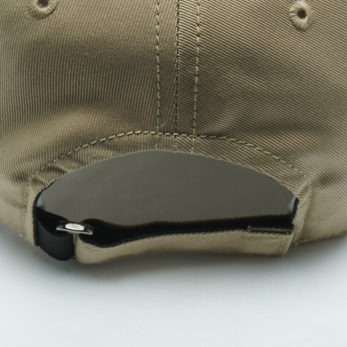 後ろのアジャスターはフィット感のあるマジックテープ+ゴム仕様で、裏側に吸水速乾機能付きのメッシュを使用し、汗をかいてもべたつかず、夏にも快適に着用できるアイテム。