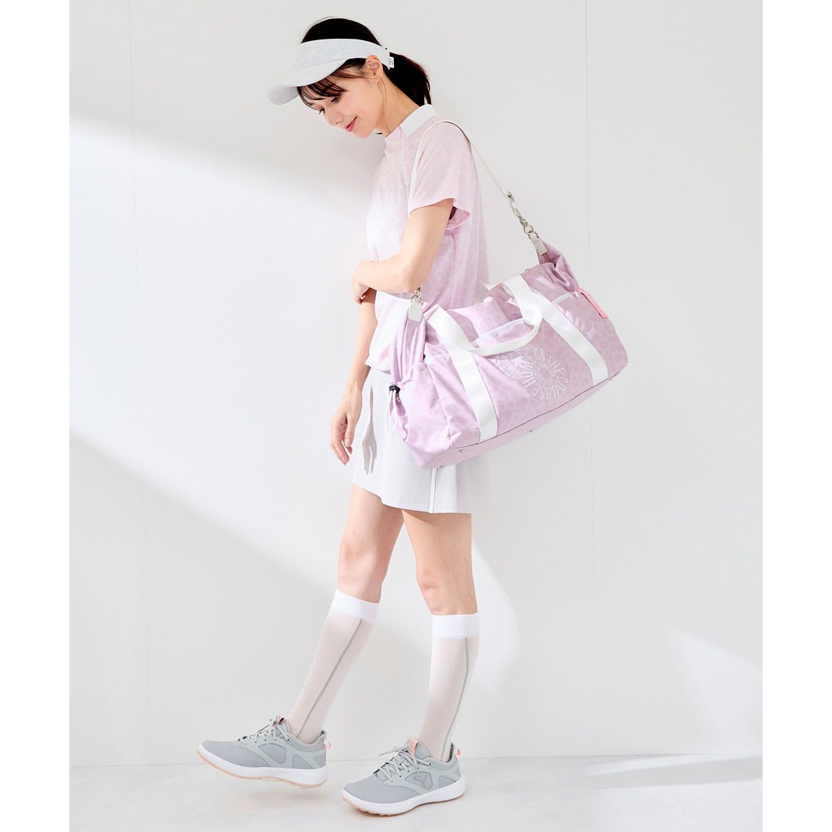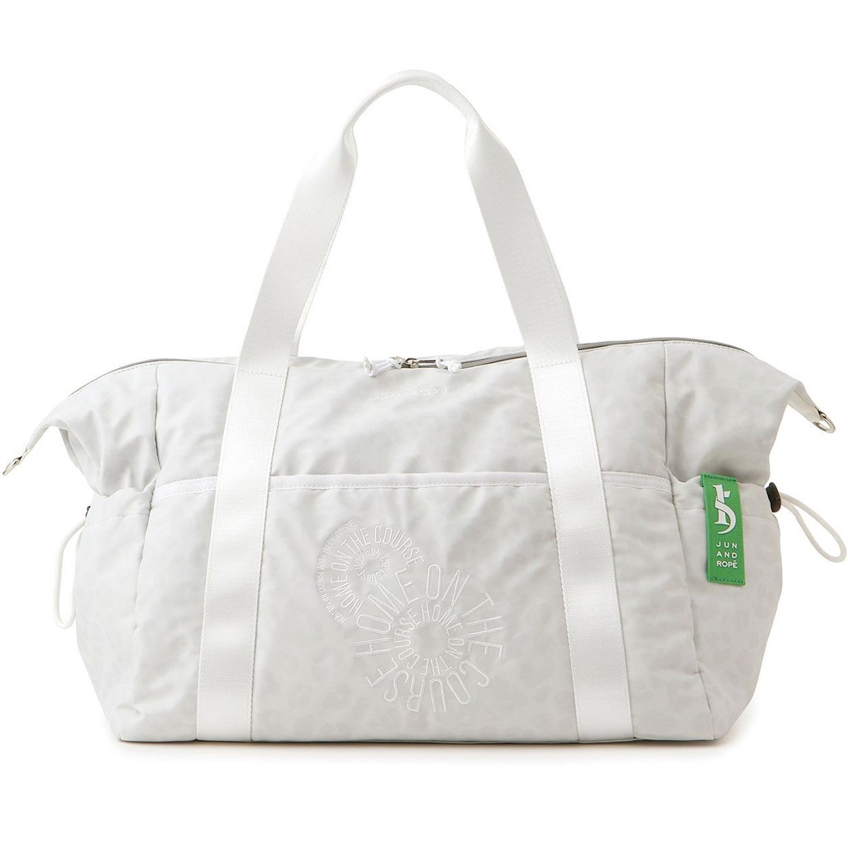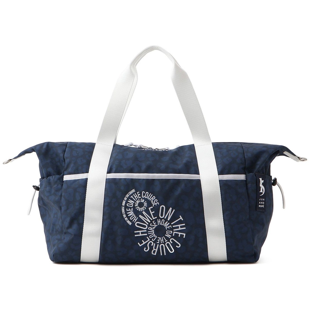 軽量のポリエステル素材にトーナルカラーのアニマルプリントとオリジナル刺繍を施したボストンバッグ。