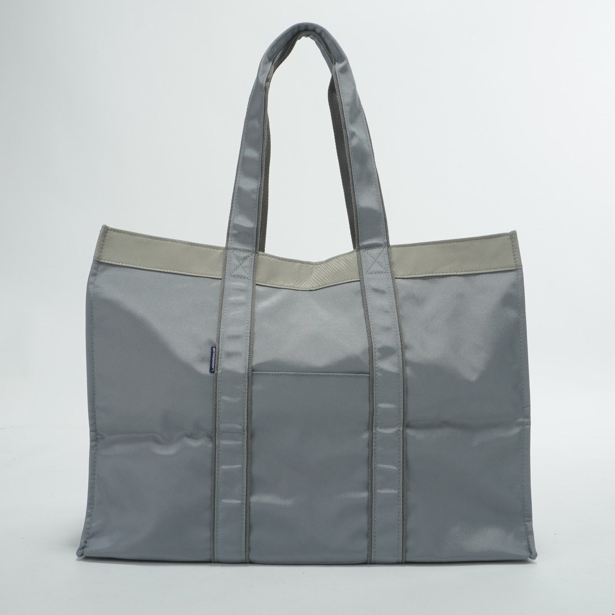 異素材の組み合わせが特徴的なトートバッグは、スタイリッシュなデザインが魅力です。