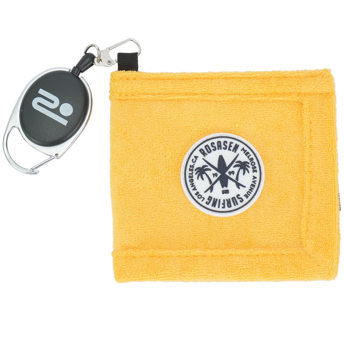 ブランドロゴ入りのリールカラビナ付きで、パームツリーやサーフボードをモチーフにしたオリジナルワッペンがアクセントに。