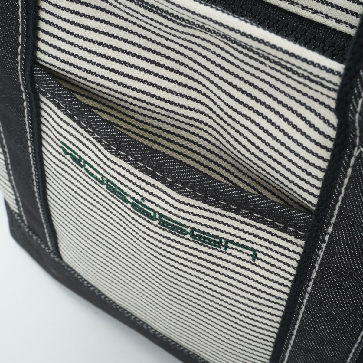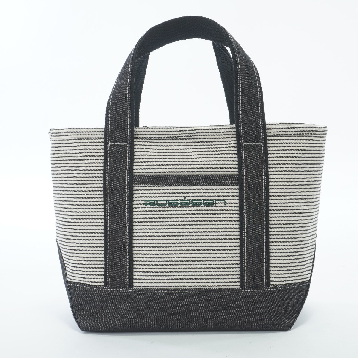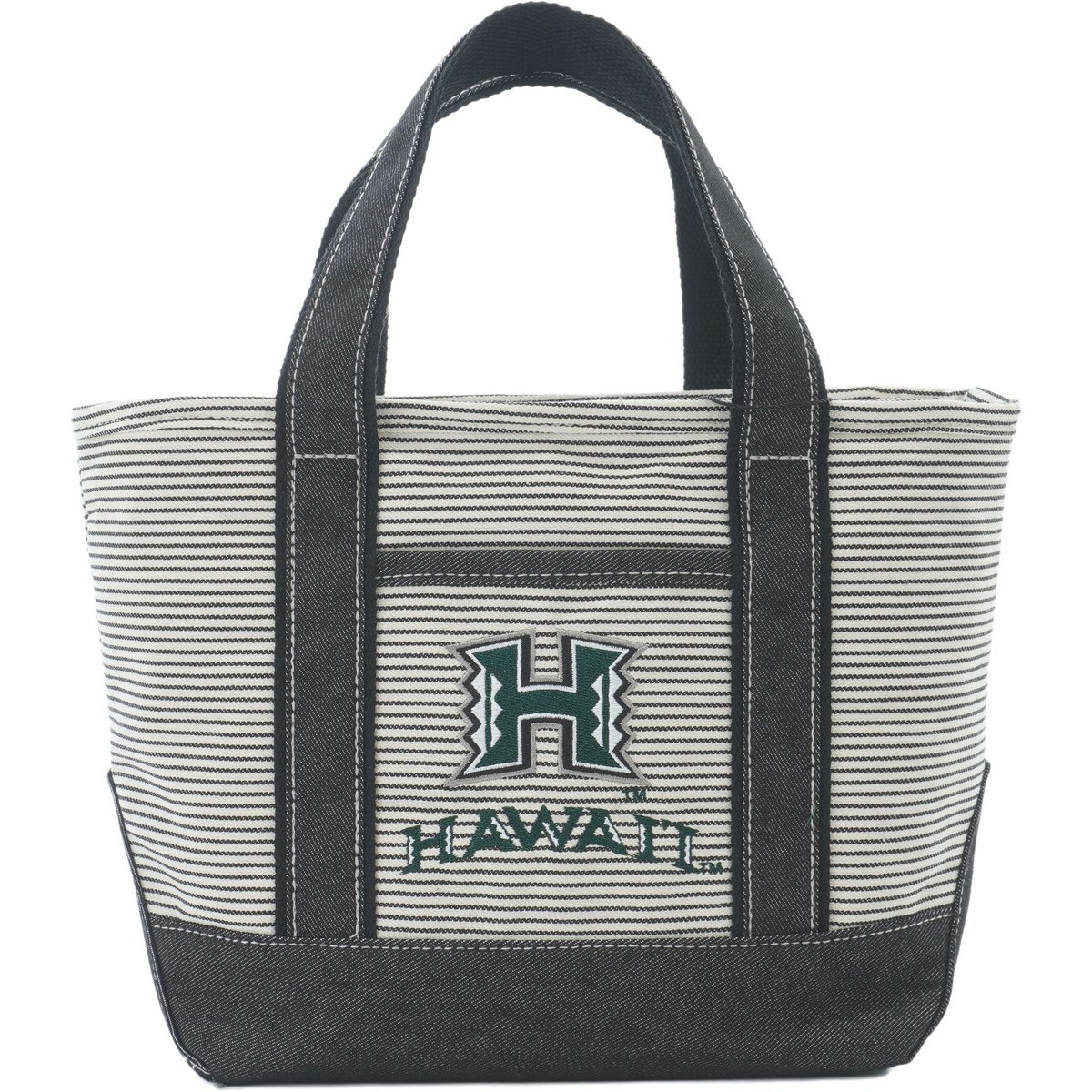 Hawaii大学カジュアル感のあるボーダー柄やオックスフォード素材とハンドルと底マチはデニム素材を使用。
