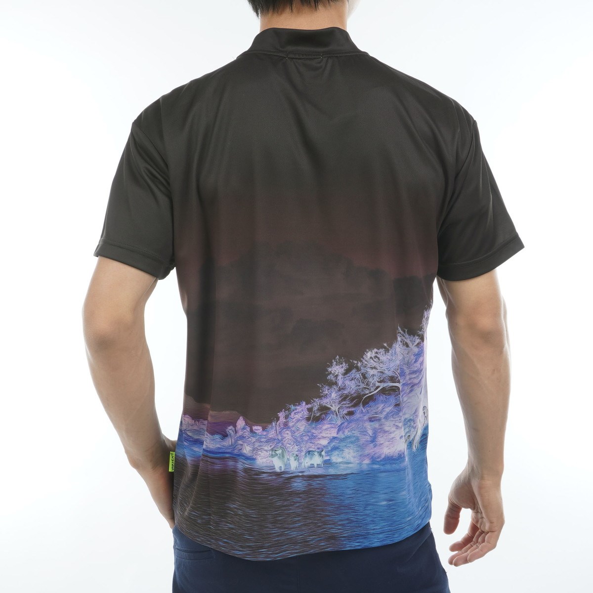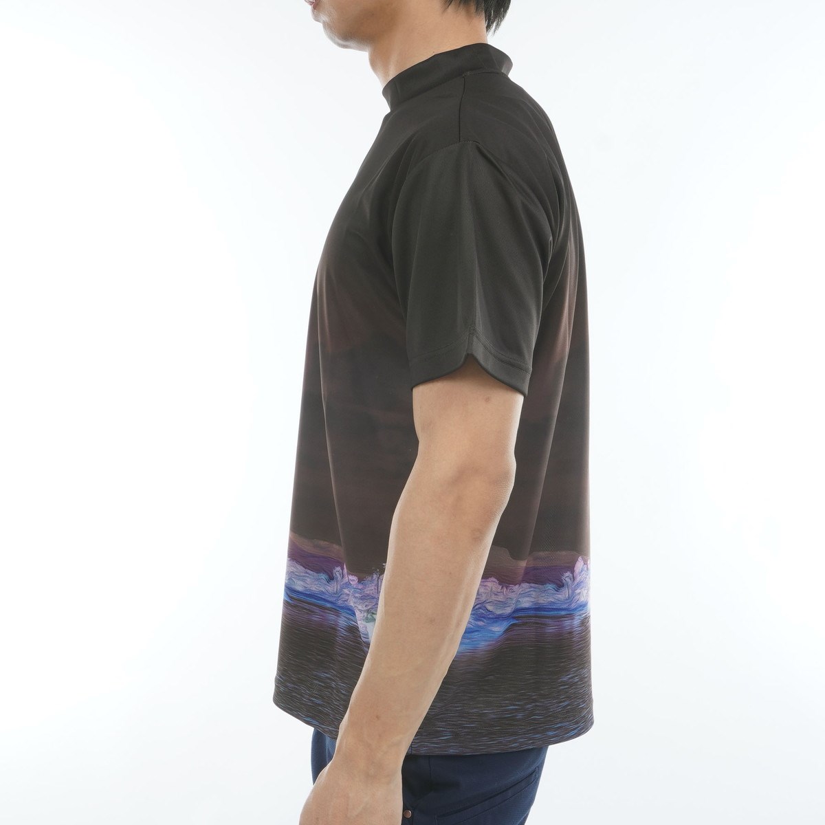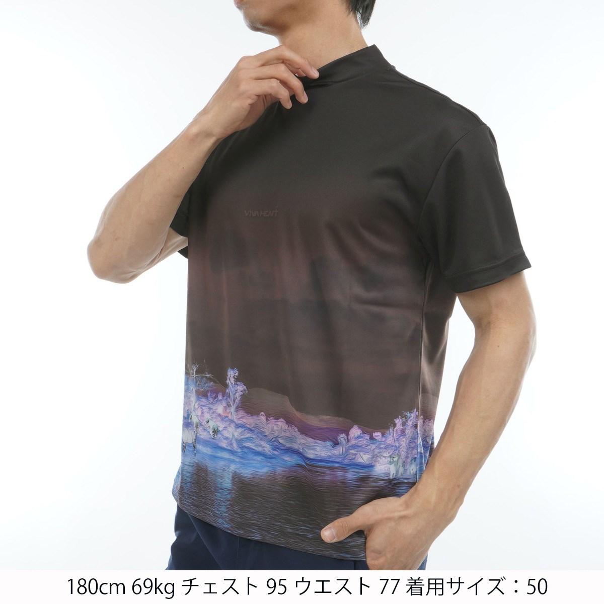 ビバハート VIVA HEART ダブルメッシュ風景 モックネック半袖シャツ 50 ブラック 019