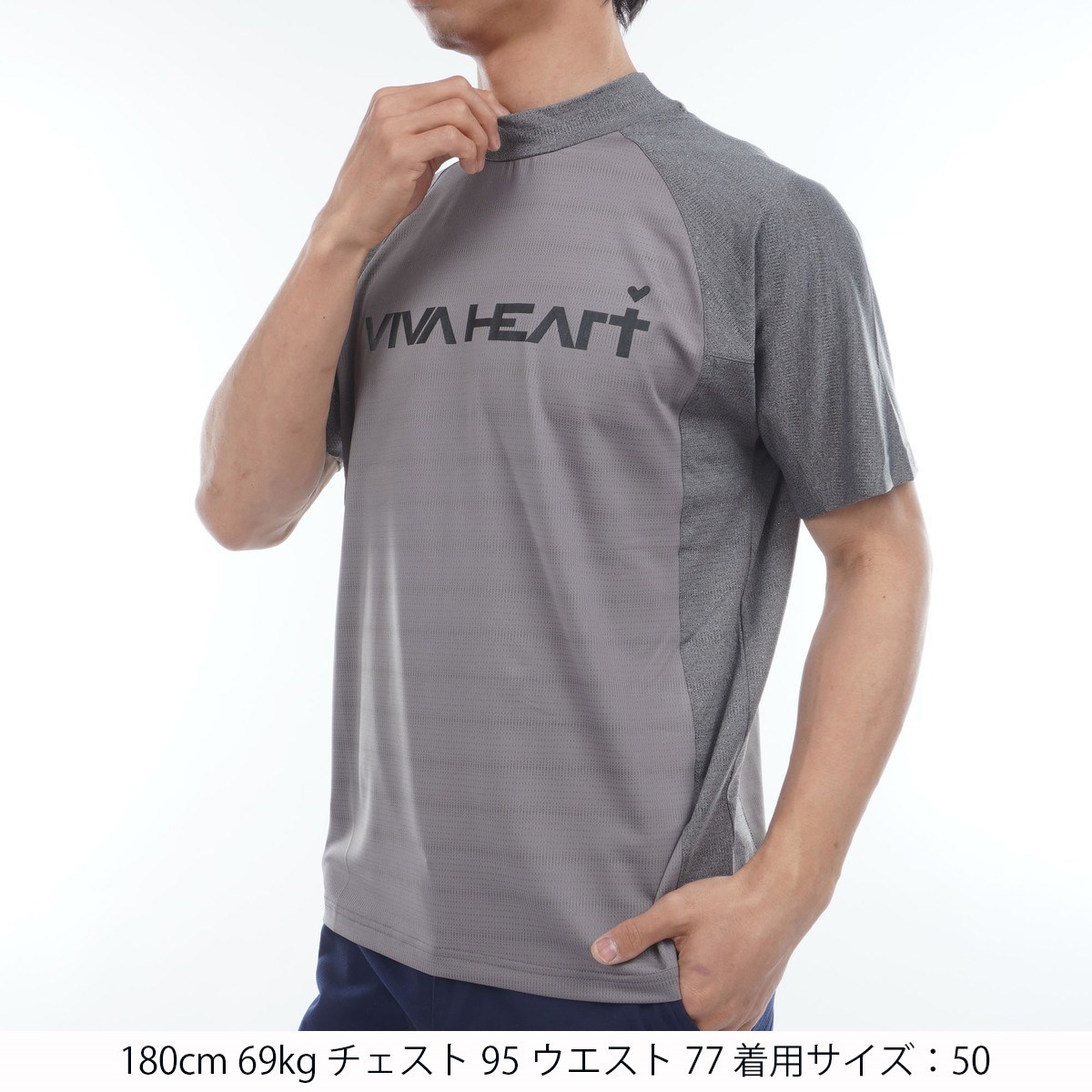 ビバハート VIVA HEART パターンメッシュアスレチック半袖シャツ 50 ブラック 019