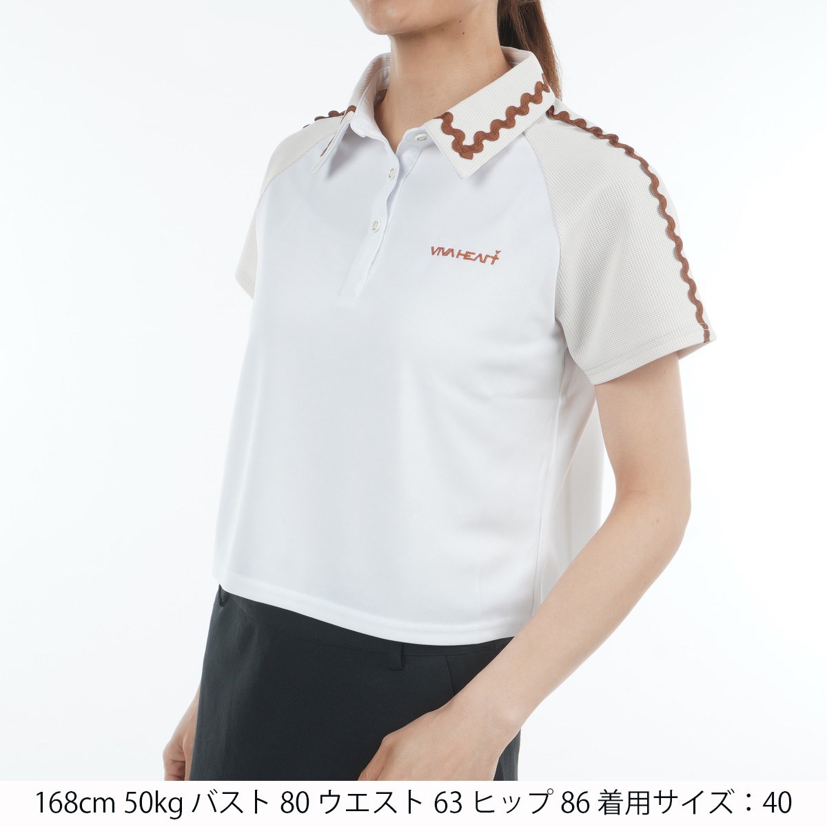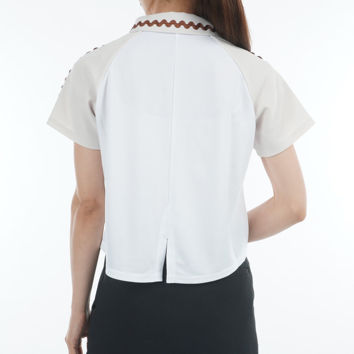 肩と衿にシックなカラーのブレードがポイントのショート丈ポロシャツ。