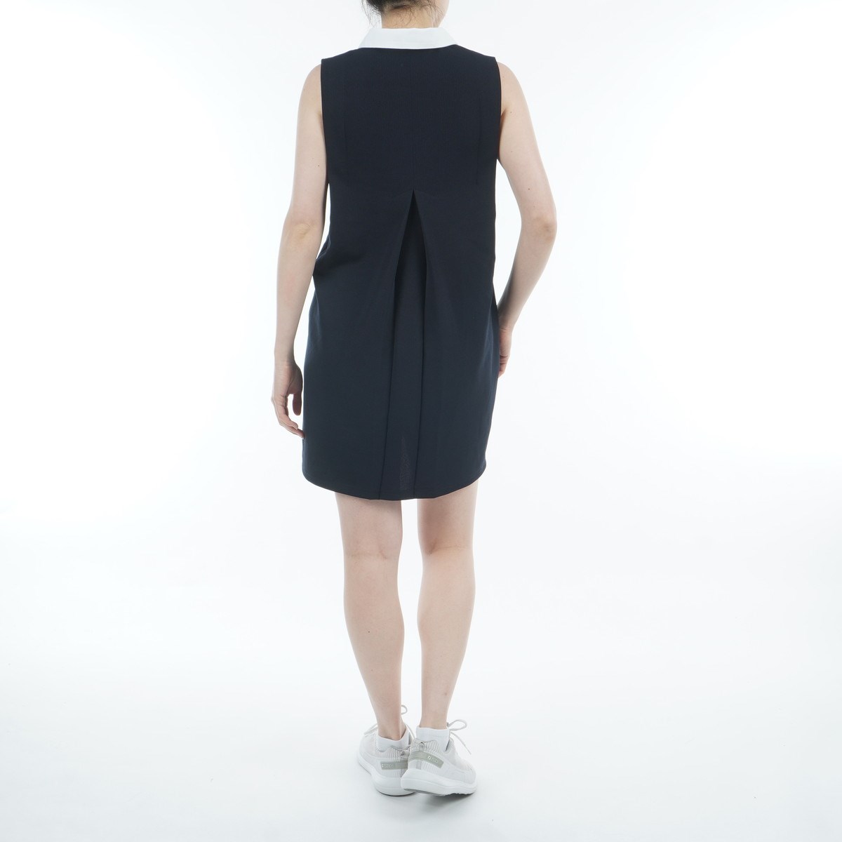 二の腕カバーの肩タックが入ったAラインシャツワンピース。