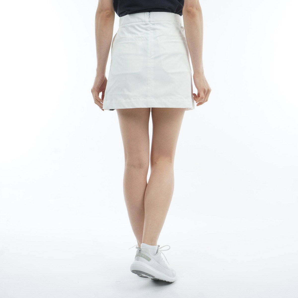 アシンメトリーデザインのプリーツスカート。