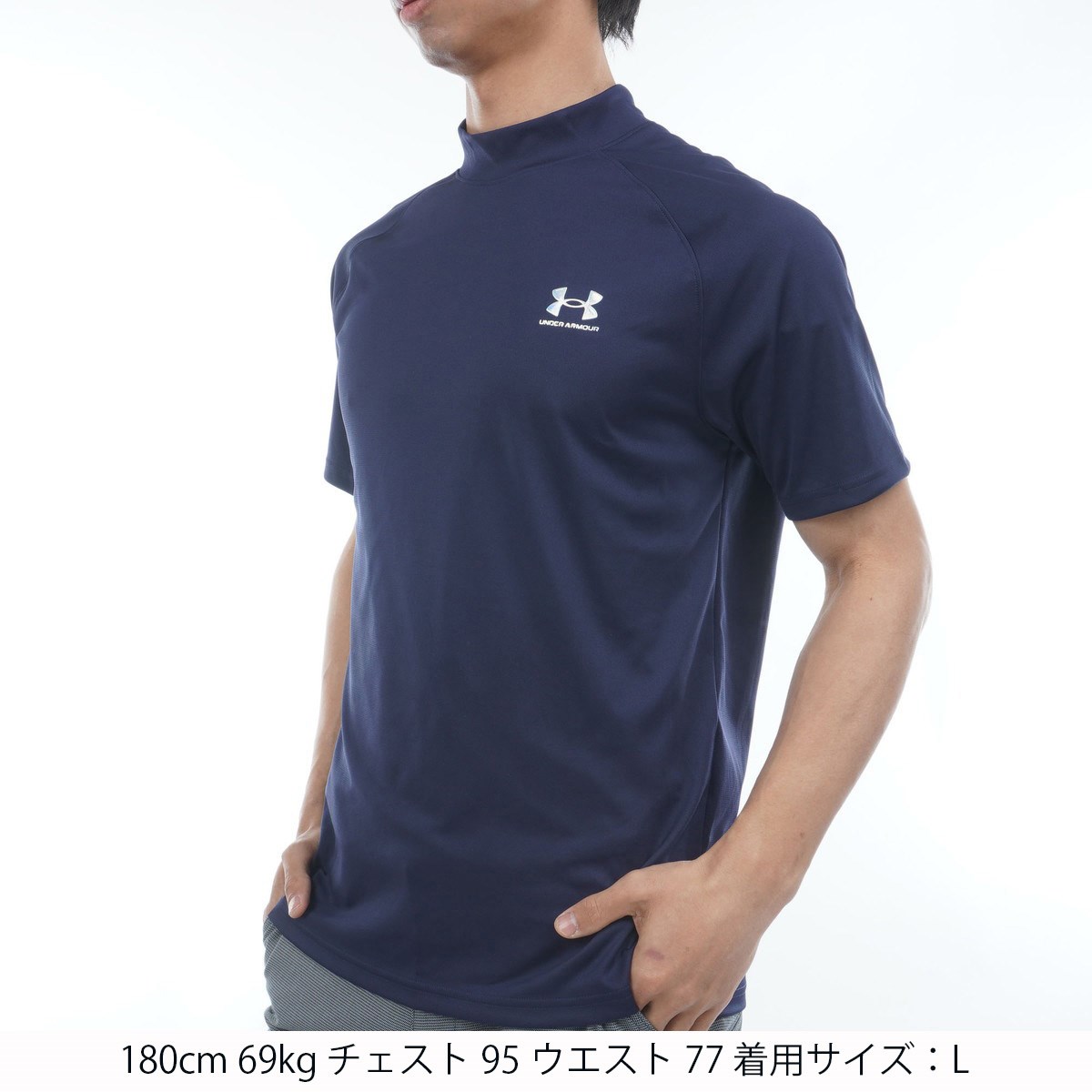 アンダーアーマー Under Armour UA アーマードライ ストレッチ モックネック半袖シャツ M Midnight Navy/Metallic Silver 410