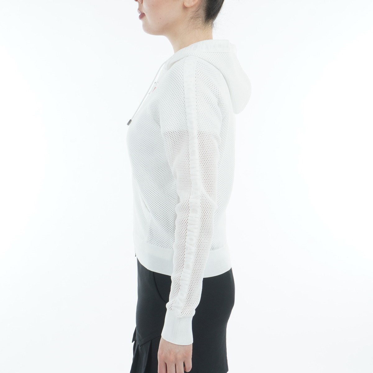 ・フードやポケット、袖などに施されたロゴジャガードテープがポイント