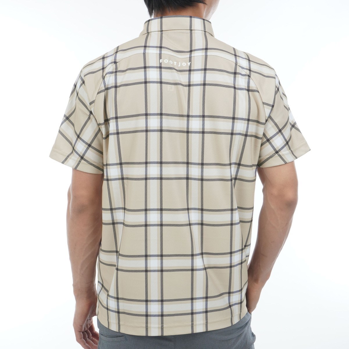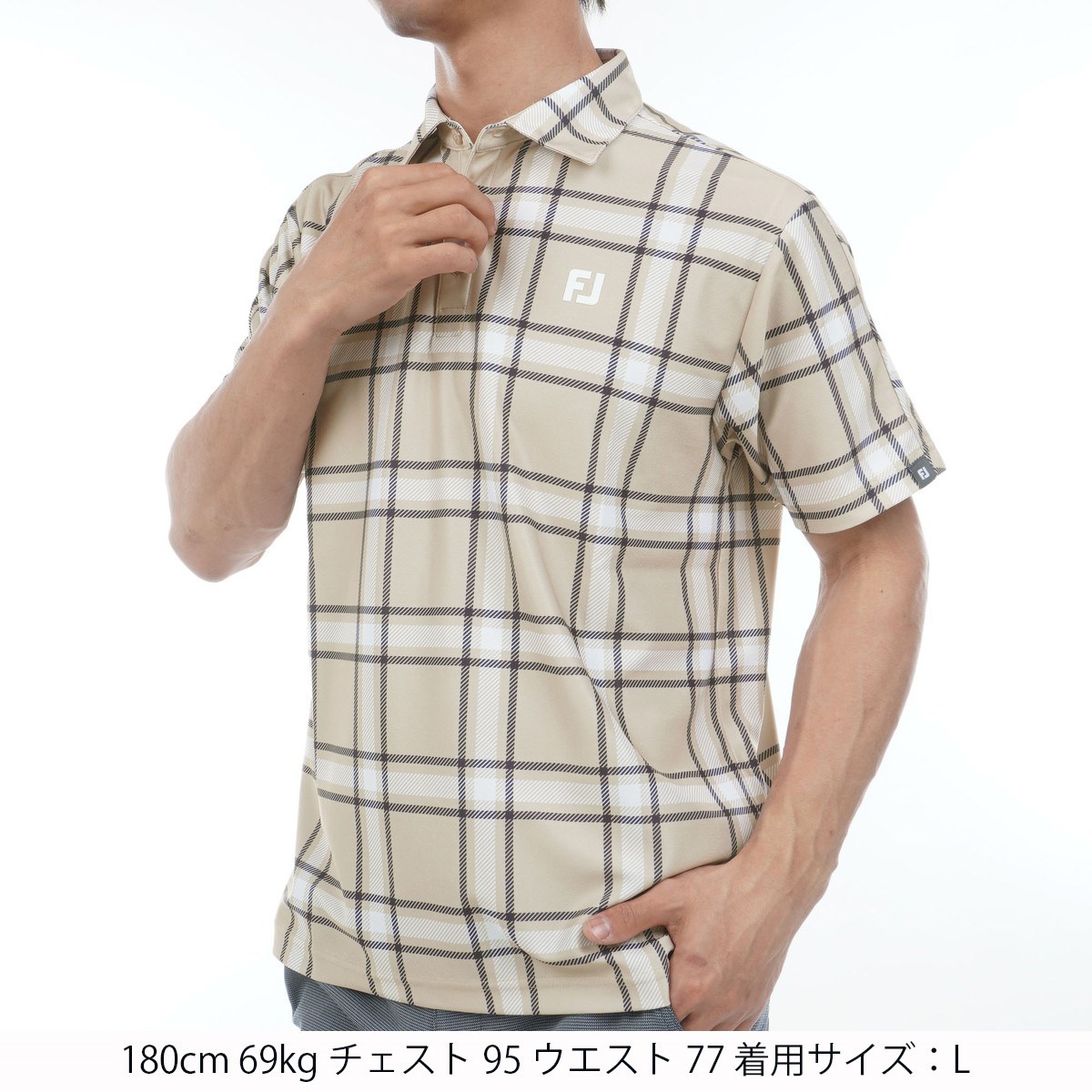 フットジョイ Foot Joy ストレッチ チェックプリント半袖鹿の子ポロシャツ M ベージュ