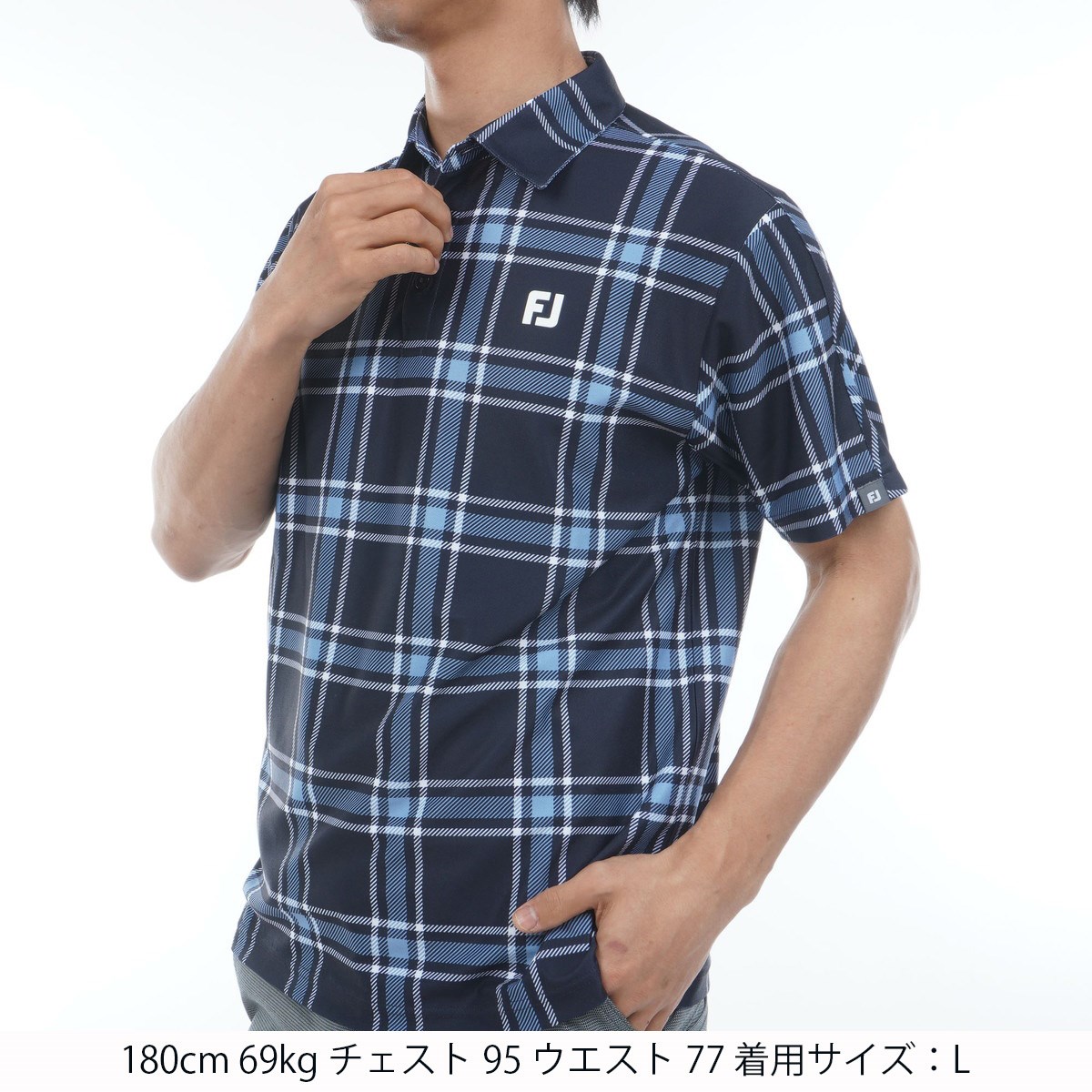 フットジョイ Foot Joy ストレッチ チェックプリント半袖鹿の子ポロシャツ L ダークネイビー