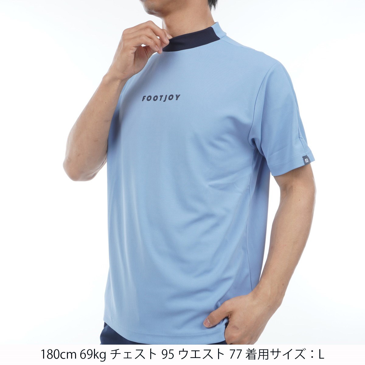 フットジョイ Foot Joy ストレッチ バイカラーモックネック半袖シャツ L ブルージェイ