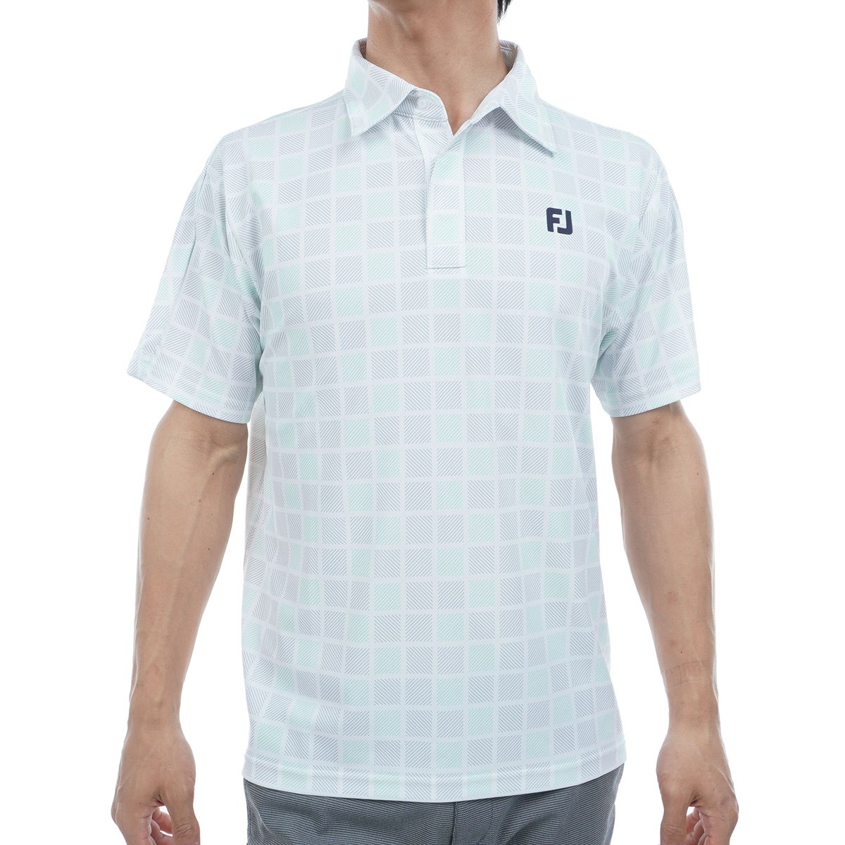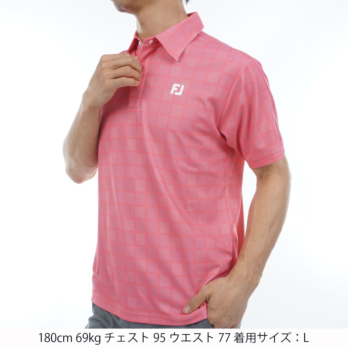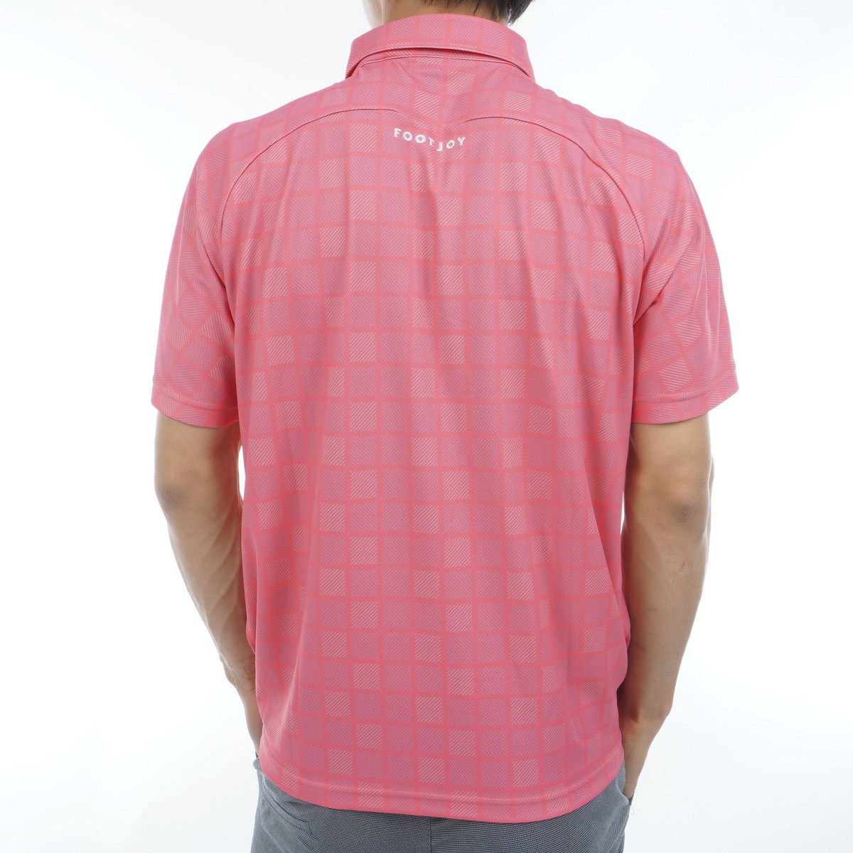 フットジョイ Foot Joy ストレッチ スクエアチェックスナップボタン半袖ポロシャツ XXL ピンクレモネード