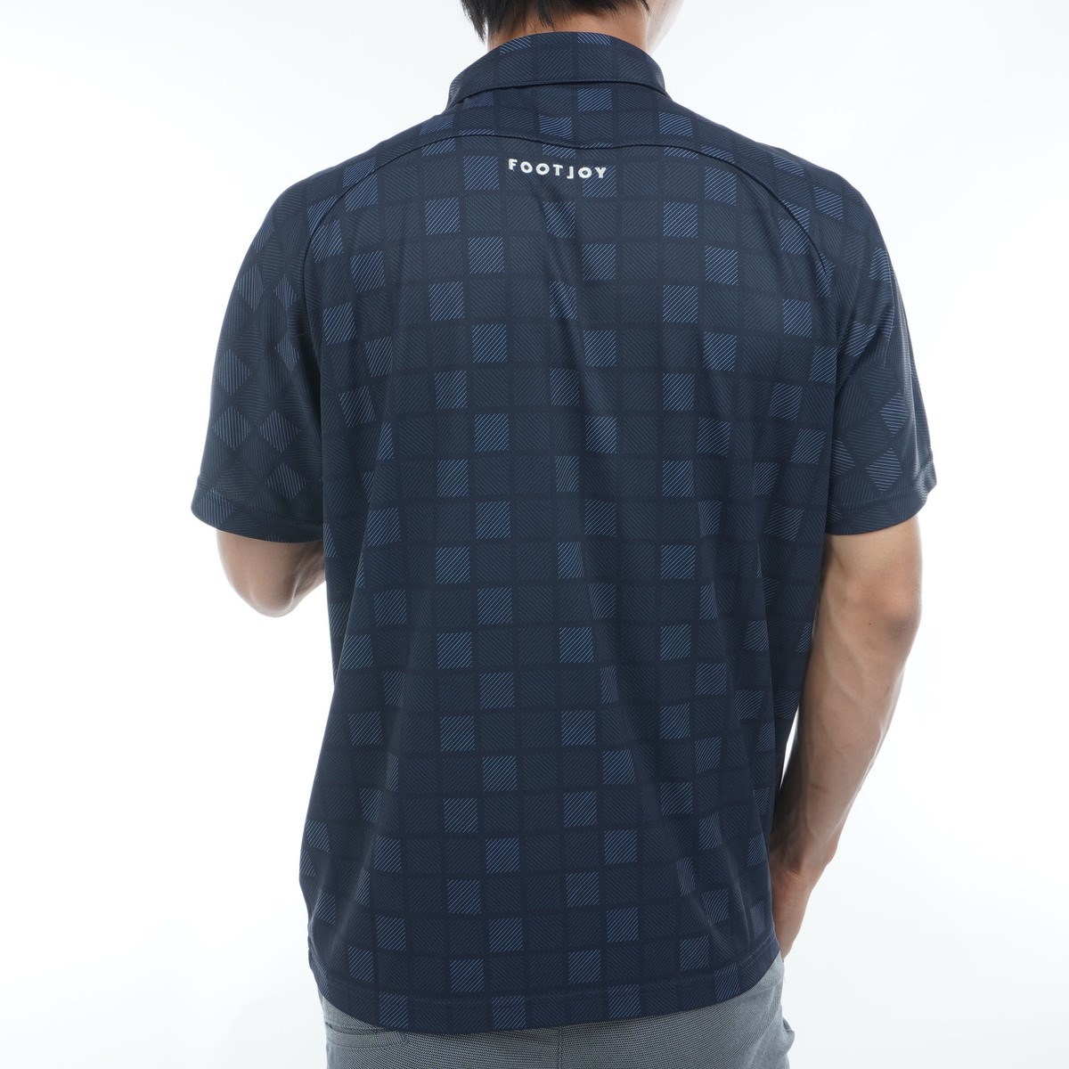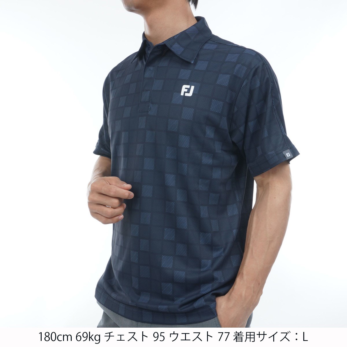 フットジョイ Foot Joy ストレッチ スクエアチェックスナップボタン半袖ポロシャツ L ダークネイビー