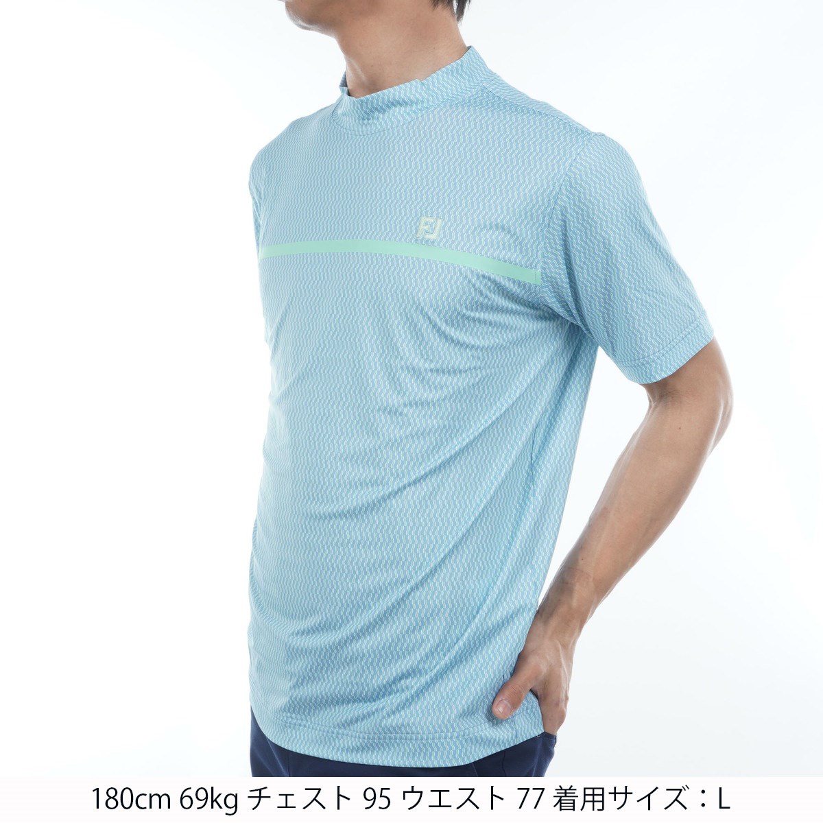 フットジョイ Foot Joy ストレッチ チェストラインモックネック半袖シャツ L ブルージェイ